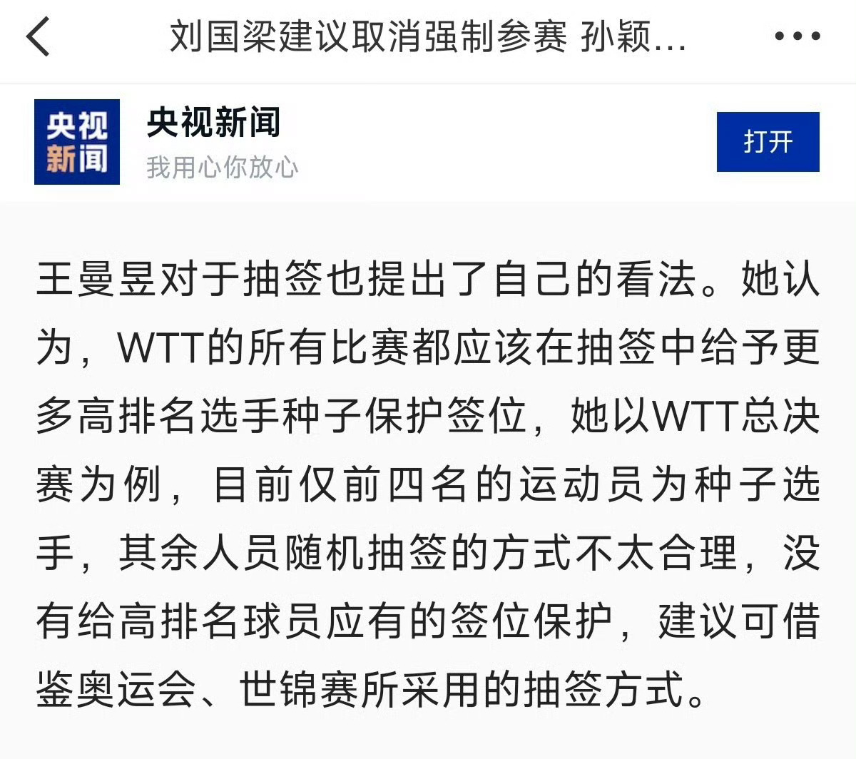 王曼昱没有想退就退的权利600的积分比赛,疼的走不了路还要带伤打赢混双女单同样,王曼昱在WTT的规则里面更没有说话权提的保护种子位签位的建议也没有被采纳反之,世锦赛,世界杯用她来卡最强外协的积分所以,你们爱拉踩谁请找准目标谢谢还有一个,别站在道德审判点去审判我们【巴奥名额的时候】各家平丝嘴巴更502黏住一样,在笑话我们,说实在每一步都是王曼昱在艰难的走着球迷只想好好陪她实现梦想!