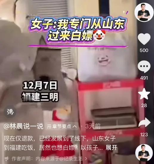 真是开了眼!带着儿子吃饭想赖账,结果被亲儿子一句话啪啪打脸。 这事简单说,就是一位妈妈陪儿子去福建永安打乒乓球比赛,中午下馆子点了120块的盐酒鸡和水煮鱼。监控里母子俩吃得可香了,盘子都快见底了。结果结账时,妈妈突然变脸,硬说菜咸得发苦,儿子是因为难吃才先走的,死活不肯付钱。 老板娘好心减10块,她不同意。警察来了三次,掰开揉碎讲道理,甚至让她当场给儿子打电话对质。你猜怎么着?孩子电话里老实说,还行啊,没觉得难吃!场面那叫一个尴尬。 闹了六小时,最后民警搬出《民法典》才镇住场子,她这才磨磨蹭蹭付了钱。可出门时竟张开双臂喊!啊,我胜利了!把店里的人都看懵了。 现在她的社交账号被扒出,连夜清空内容,但网友早就截图了。有人说她这不是差钱,是白嫖上瘾,享受那种占便宜的感觉。最让人心疼的还是孩子,被妈妈当成赖账的工具人,还得当着警察的面被逼撒谎。 吃饭付钱,天经地义。这么简单的道理,怎么有些人活了半辈子反而糊涂了呢?这哪是省了120块,这是把做人的体面和孩子心里的信任都给丢了啊。