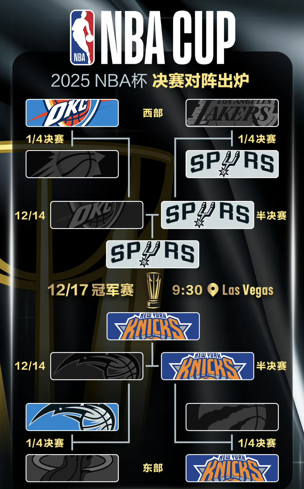 NBA杯半决赛马刺尼克斯天王扇之战17号,周三上午,见证NBA杯新王诞生🏆