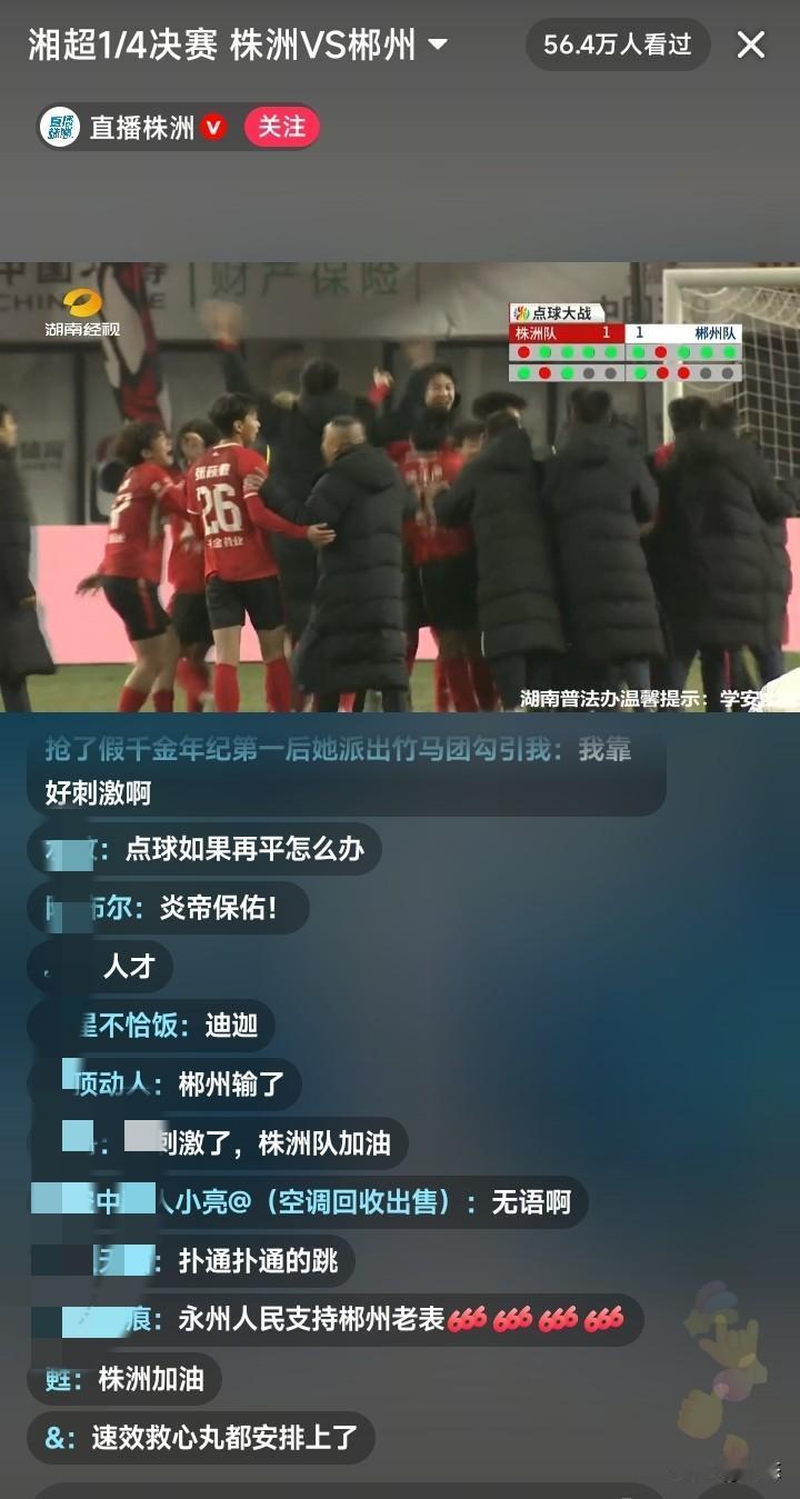 没想到永州和娄底点球大战,株洲和郴州也来个点球大战,虽然永州已经赢了,郴州还是没有顶住压力8轮点球输了。一个球打飞了,太可惜了。 今天看了郴州的比赛,不得不是踢得非常流畅,不愧是平南王,虽败肉荣吧,有点可惜了。 湘南三虎只能希望永州冲出重围了。你们觉得永州会爆冷把长沙拿下吗?