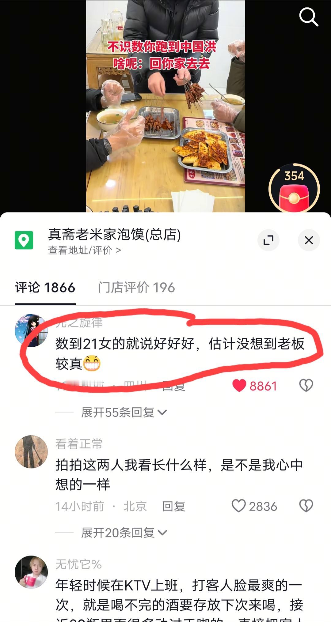 西安某泡馍店,两位游客点了30串烤肉,说老板给烤了23串,老板直接一根一根的给他们数了一遍…… 细心网友看了视频后,吐槽道:数到21的时候女的就说好好好,估计没想到老板这么较真。 也有网友质疑:有没有可能,这个视频就是摆拍?我就好奇,这个视频到底是谁拍的,这两位顾客明知自己有错在先,怎么可能让老板把手机放在那个位置,从头录到尾呢?现在一些视频博主,拍视频已经搜肠刮肚,无所不用其极了! 网友们,你们觉得呢?