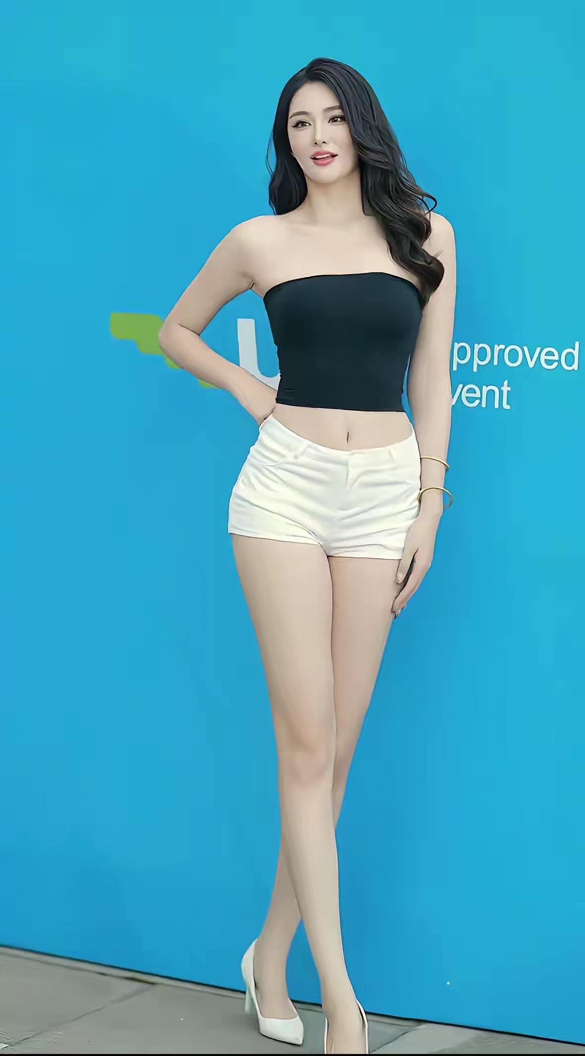 车展上的这位优雅车模真是赚足了眼球!白色衬衫搭配米色长裤,这看似简单的组合,却被