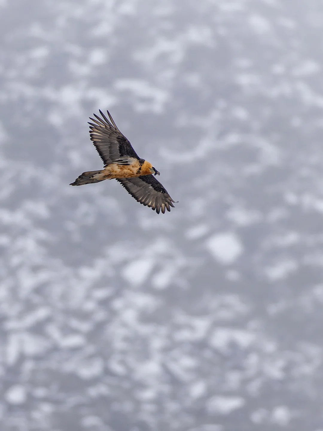 原创拍摄 胡兀鹫,Bearded Vulture,鹰形目鹰科胡兀鹫属。这是个单型属,胡兀鹫属唯一物种。我国一级保护动物。广泛分布在高海拔山区,我每一次到川西,青海,西藏都有幸看到,非常帅气又独特的猛禽。 这次在色季拉山口,看到了这只在大雪中盘旋的胡兀鹫,在苍茫雪山间的翱翔,看似漫不经心,却在一个不注意就飞到了我们的面前,和我四目相对,实在是神奇的体验。