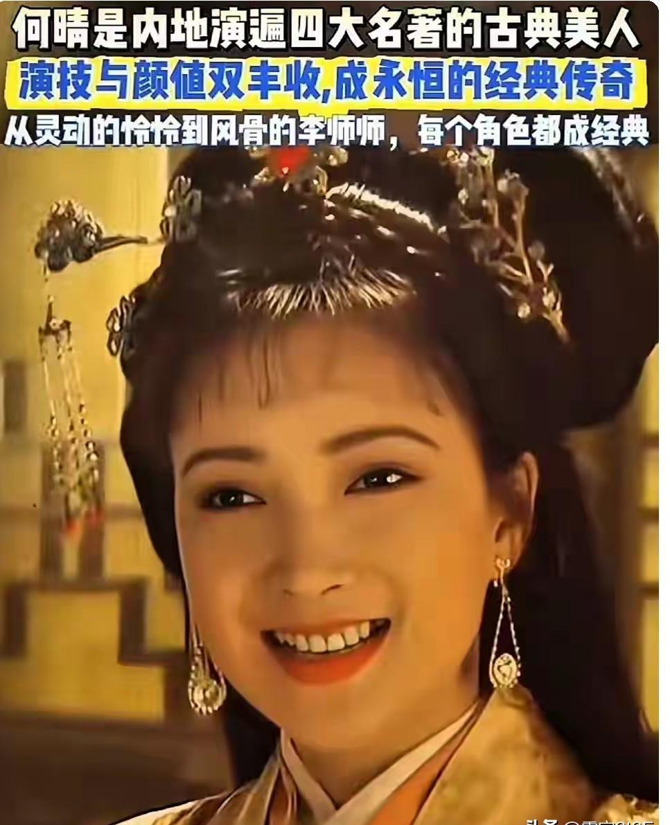 她把四大名著“修”完了。 61岁,与癌症缠斗十年后,何晴走了。 你以为的“古典美人”,在摄像机外,完成了最漫长的告别。 不是“演过”,是“唯一演全”。 秦可卿的凄艳、小乔的温婉、李师师的风情、怜怜的娇俏。 她用一副江南骨骼,撑起了四部华夏史诗。 西湖水淬过的眼神,流过名著每一页。 但你几乎听不到她的声音。 离婚后与前任坦然相处,患病十年鲜少诉苦。 她把惊涛骇浪都摁进了角色里,现实生活,静水流深。 直到2016年《女医明妃传》,幕布缓缓落下。 一个时代的美学样本,自此封存。 握住李师师的团扇,扶住秦可卿的棺椁。 她不是在扮演角色,她是在为每个时代,存下一缕魂。