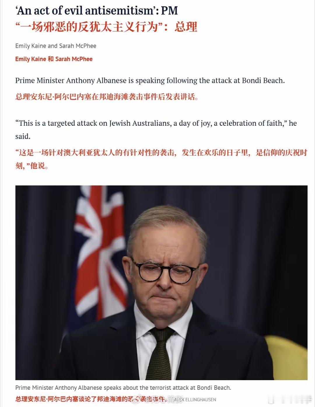 澳大利亚总理阿尔巴尼斯先生在堪培拉晚上 10 点后的新闻发布会上说证实,“在邦迪海滩举行的光明节庆祝活动中发生了一起毁灭性的恐怖袭击事件。” 恐怖事件造成12人死亡,29人受伤,其中包括一名嫌疑枪手。 据悉,枪手均为穆斯林,有两人被捕,其中一人是建筑工人纳维德・阿克拉姆,他曾在悉尼的阿拉伯穆拉德学院学习,另外一人是巴基斯坦穆斯林移民纳菲兹·阿克拉姆。 包括被打死的枪手在内的几位枪手都是邻居眼中的好人,至于这几位穆斯林为何突然屠杀异教徒,官方尚未揭示。
