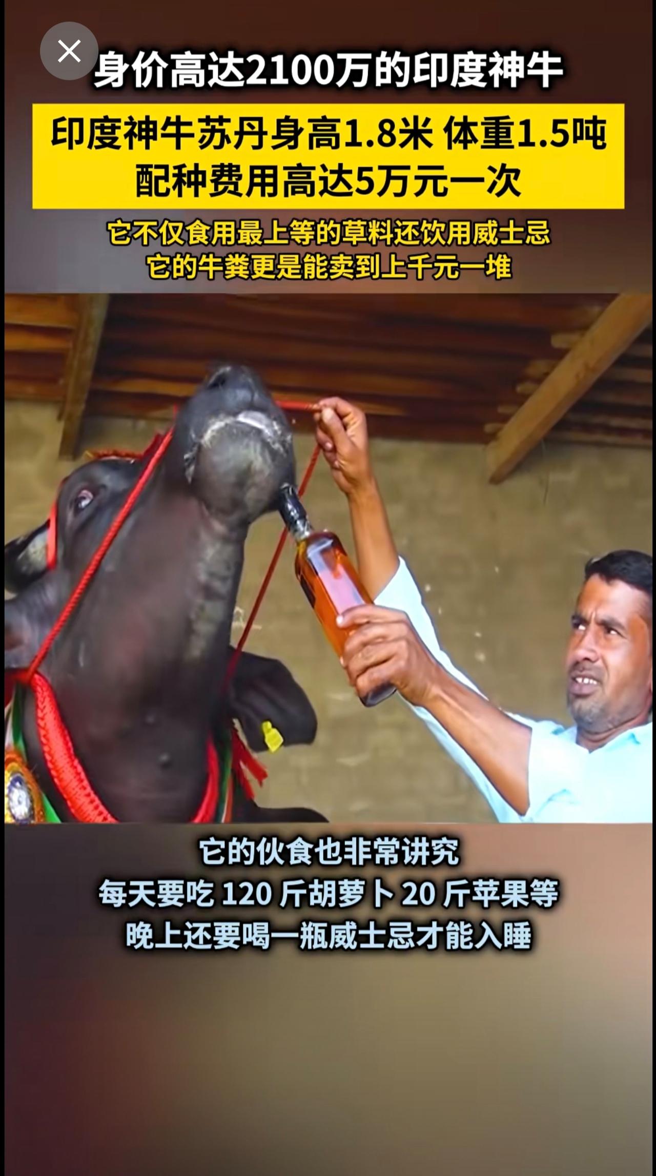 身价2100万的印度神牛有何特别之处?每天晚上必须要喝威士忌!