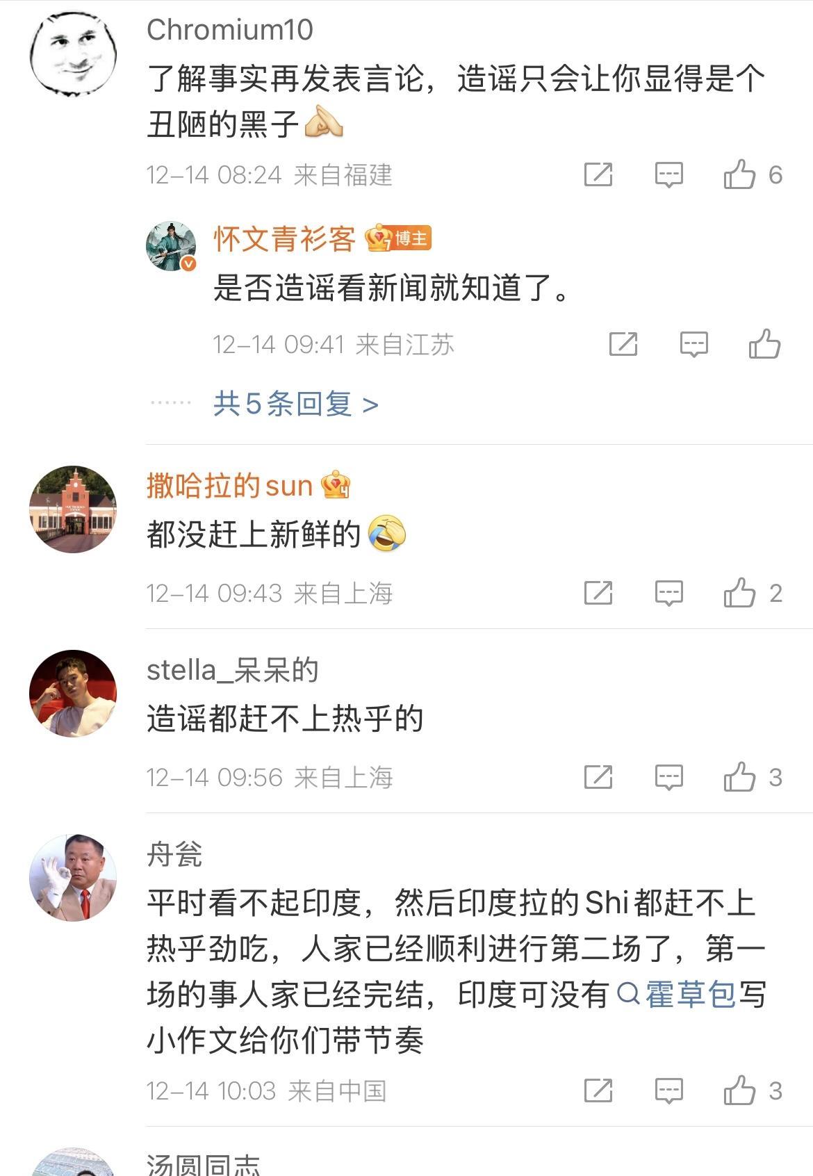 果然,在梅西印度行首站出了状况后,中国的U型锁们又亢奋了,指责梅西不尊重印度球迷,并把去年的香港行联系起来,说梅西不值得球迷爱戴。 评论区众人反击碍国者: 在加尔各答的体育场,梅西本想走向看台与球迷互动,但被政客拉去拍照,球迷们根本看不清梅西在哪里,愤怒叫喊,现场过于混乱,活动提前终止。 中国这帮子爱国者平时看不起印度,但是印度拉的屎都赶不上热乎劲吃,人家已经顺利进行第二场了,第一场的事人家已经完结,印度可没有霍草包写小作文给它们带节奏。