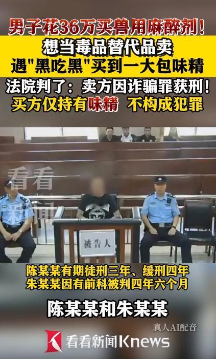2025年3月,江苏淮安,一男子偶然得知有人拿兽用麻醉剂,来当“毒品”的代替品,他自认为找到了商机,就从别人那里买了36万元的货!然而收到货后,男子却发现竟是一大袋味精,于是将买家告上法庭。法院:男子无罪! 12月12日报道,江苏淮安一起诈骗案的判决,在网上吵得沸沸扬扬。 争议的焦点不是被判刑的诈骗者,而是这起“黑吃黑”闹剧里的“受害者”冯某。 这一切,都要从2025年3月那笔荒唐的交易说起。 冯某是淮安当地人,那段时间偶然听说了一个“偏门路子”,有一种叫替来他明的兽用麻醉剂,能当成毒品的替代品卖,地下市场里一斤能卖不少钱。 这个消息让冯某动了歪心思,他压根没考虑这种行为会带来的社会危害,满脑子都是靠这笔买卖快速捞一笔。 为了凑够本钱,冯某四处找人借钱,东拼西凑终于攒够了36万。 之后他又通过各种渠道打听,终于联系上了声称有货源的陈某某和朱某某。 冯某没敢多问对方的底细,只想着尽快成交,生怕这“发财机会”跑了。 他不知道的是,自己找的这两个人,根本就没有所谓的货源。 陈某某和朱某某从一开始就没打算正经交易,他们心里打的是“黑吃黑”的算盘。 两人认定,冯某买这种东西是用来做非法买卖的,就算收了钱给不出货,冯某也不敢声张,更不敢报警。 抱着这样的侥幸,他们随便去超市买了一包普通味精,找了个不起眼的包装重新装起来,把味精伪装成替来他明的粉末。 交易那天,冯某带着36万现金,和陈某某、朱某某在约定的地方碰了面。 他匆匆检查了一下包装,没发现什么问题,就把钱交给了对方,小心翼翼地接过了那个装着“发财希望”的包裹。 可等他回到家,迫不及待地打开包装准备验货时,整个人都懵了。 包裹里装着的,根本不是什么珍贵的兽用麻醉剂,就是家家户户厨房都有的味精。 36万,几乎是他拼尽全力凑来的钱,就这么变成了一包几块钱的味精。 愤怒瞬间冲昏了冯某的头脑,他完全忘了自己最初的目的是违法的,满脑子都是要把钱要回来。 最终,他还是选择了报警,把自己和陈某某、朱某某一起,都推到了法律面前。 警方很快就查清了事情的来龙去脉,陈某某和朱某某的诈骗行为证据确凿,被依法提起了公诉。 法院审理后认定,两人已经构成了诈骗罪,考虑到陈某某在调查中积极配合,法院从轻判处他有期徒刑三年,缓刑四年。 而朱某某因为之前有过前科劣迹,法院依法对他从重处罚,判处有期徒刑四年六个月。 至于冯某,法院最终认定他不构成犯罪。 理由是冯某实际收到的是味精,并不是法律意义上的毒品或者制毒物品,而且他也没有把买到的东西再次售卖,最初的犯罪意图没能转化成实际的犯罪行为。 这个结果一出来,网上的讨论就炸开了锅。 有网友觉得这事儿很荒诞,调侃说“以后不用担心买到假毒品了”。 但更多的网友把目光放在了冯某的犯罪意图上,觉得不能就这么算了。 他们认为,冯某从一开始就知道替来他明是违禁品,还特意凑钱买了准备转卖牟利,已经有了明确的犯罪想法。 只不过是因为被陈某某和朱某某骗了,才没能得逞,要是就因为这样不追究他的责任,难免会让人觉得有失公允。 这里必须说清楚,替来他明虽然是兽用麻醉剂,但对人体的危害极大。 人体一旦吸食,会严重损害神经系统,甚至危及生命,相关条例早就禁止网络销售,更严禁用于人体。 冯某不可能不知道这些风险,可他还是为了钱铤而走险,本身就已经踩在了法律的红线边缘。 而陈某某和朱某某之所以敢这么大胆地实施诈骗,核心就是赌冯某不敢报警。 他们以为“黑吃黑”能高枕无忧,却忘了诈骗本身就是严重的犯罪行为,不管骗的是谁,只要触犯了法律,就一定会受到制裁。 这起案子也给大家提了个醒,任何想通过非法途径牟利的想法,都是危险的。 陈某某和朱某某为了骗钱,最终把自己送进了监狱,冯某为了发财,不仅没赚到钱,还赔光了36万,虽然没被判刑,但也付出了惨重的代价。 非法的路子从来都走不通,只会让人一步步陷入深渊,最终得不偿失。