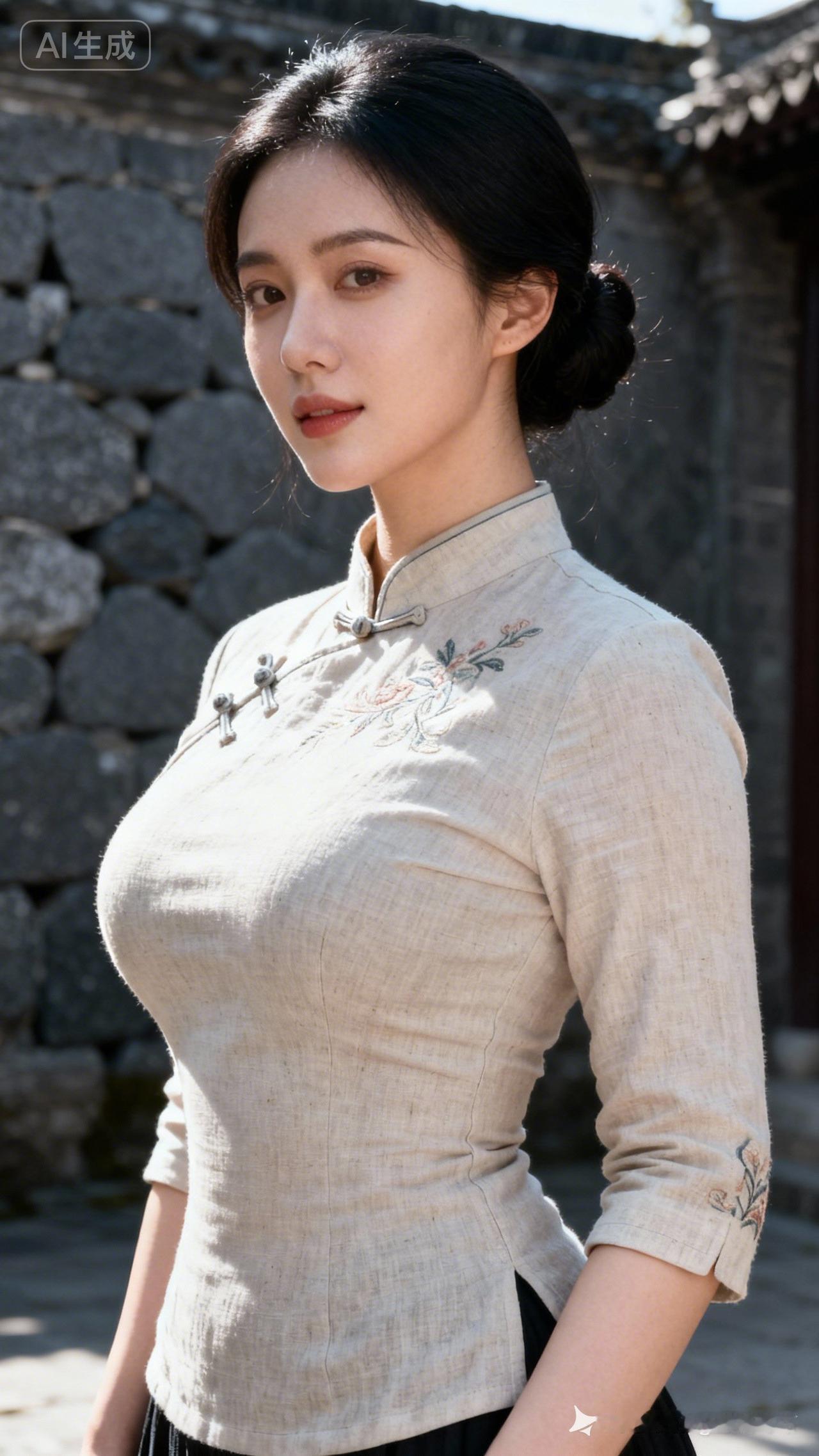 优雅旗袍少女,红墙映衬,古典韵味十足