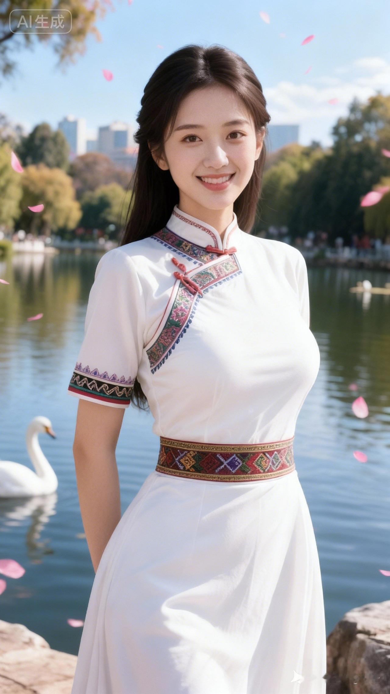 优雅旗袍,公园漫步,粉樱飘落,春日气息