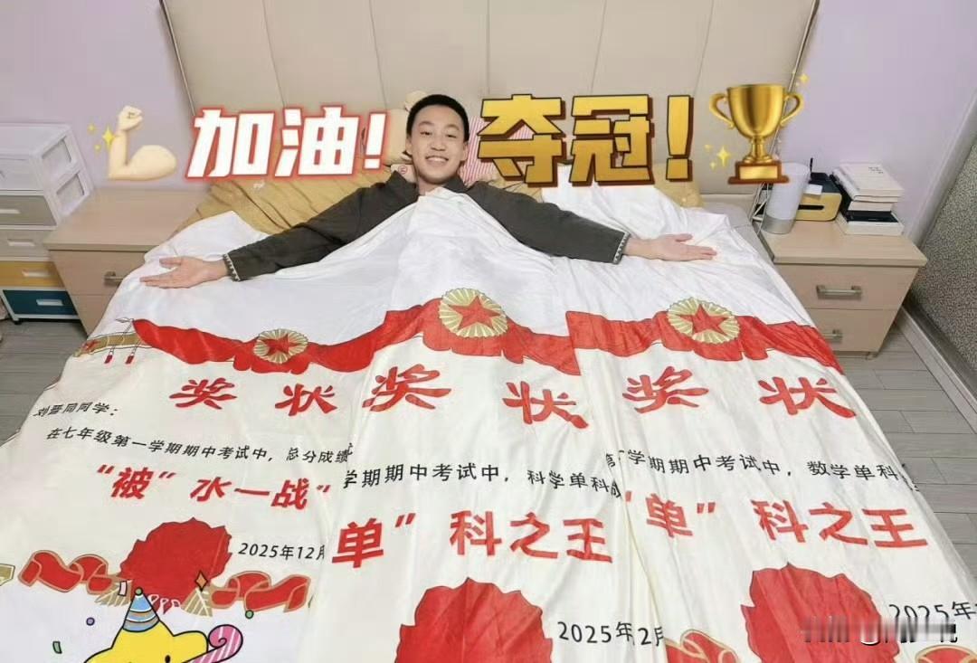 “杭州这所学校的奖励方式火了!”期中检测后,该校两个班级没发传统纸质奖状,反而把专属奖状印在被子、毛毯、枕头等生活用品上,单科前五拿“学霸认证”被单,总分前五得“卷王战袍”被套,进步前五抱“成长之枕”,单科进步奖是“进步之神”毛毯,就连最佳值日生、课代表也有专属奖品,碗对应“光芒‘碗’丈”,梳子藏着“知‘梳’达礼”,创意十足,家长群里直接沸腾了。 此事曝光后,众多网友纷纷称赞,“这奖励太实用了!比纸质奖状有意义,孩子天天用着都能想起自己的努力,太赞了!” 比起容易被遗忘的纸质奖状,印着荣誉的生活用品,周少认为把鼓励藏进日常,既贴心实用,又能让孩子时刻感受到认可,还能带动全家分享喜悦,满满温度。 这种打破传统、贴近生活的教育方式,既尊重了孩子的努力,又传递了正向引导,不仅让荣誉更有分量,也能激发孩子的积极性,值得更多学校借鉴!#寻美三湘# #长沙新朋友#
