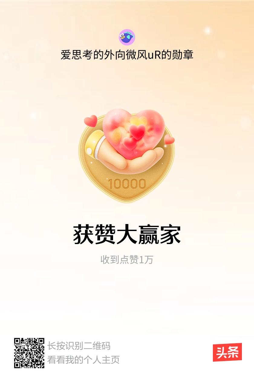 我获得了【获赞大赢家】勋章!邀请你一起集头条勋章、记创作之路!