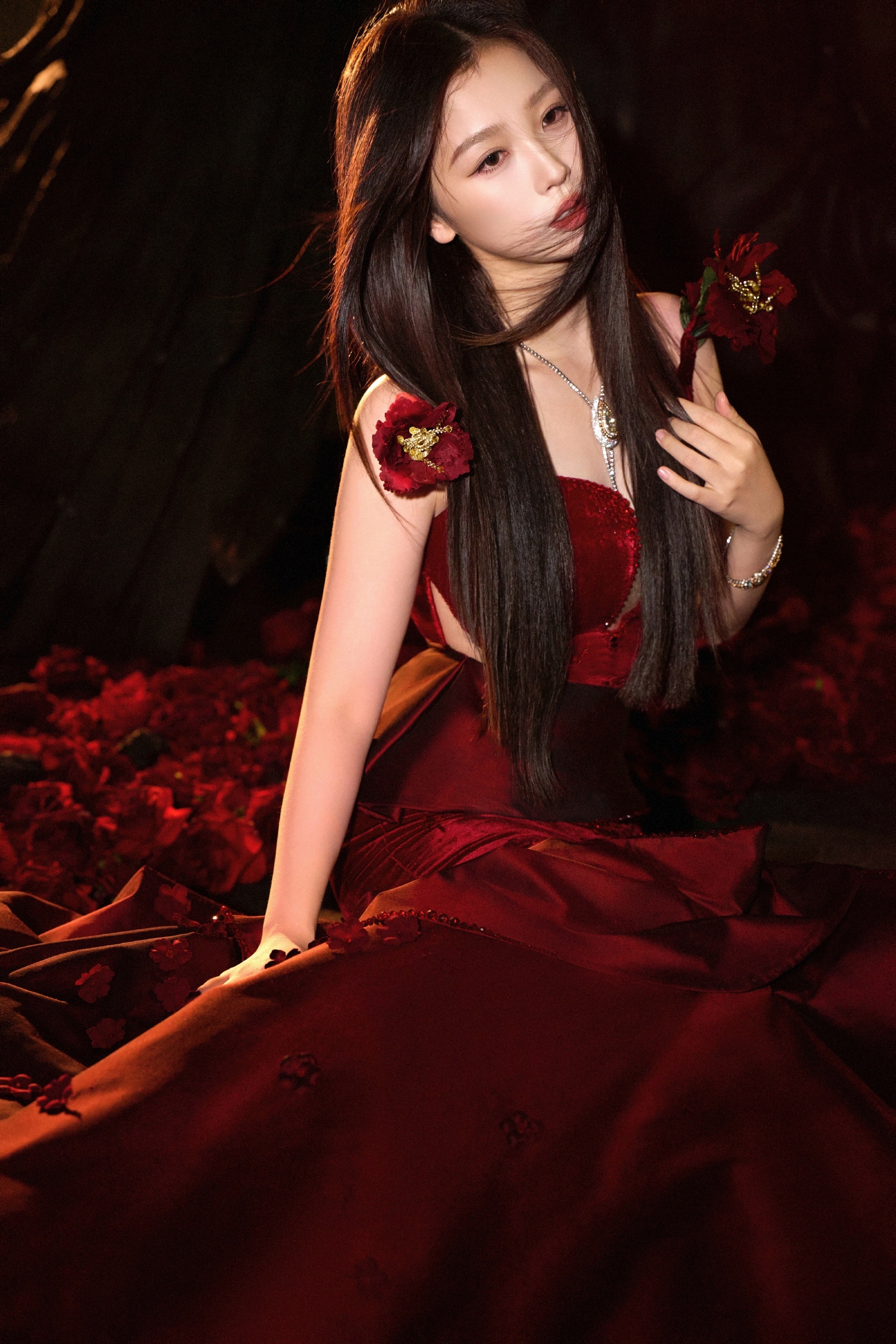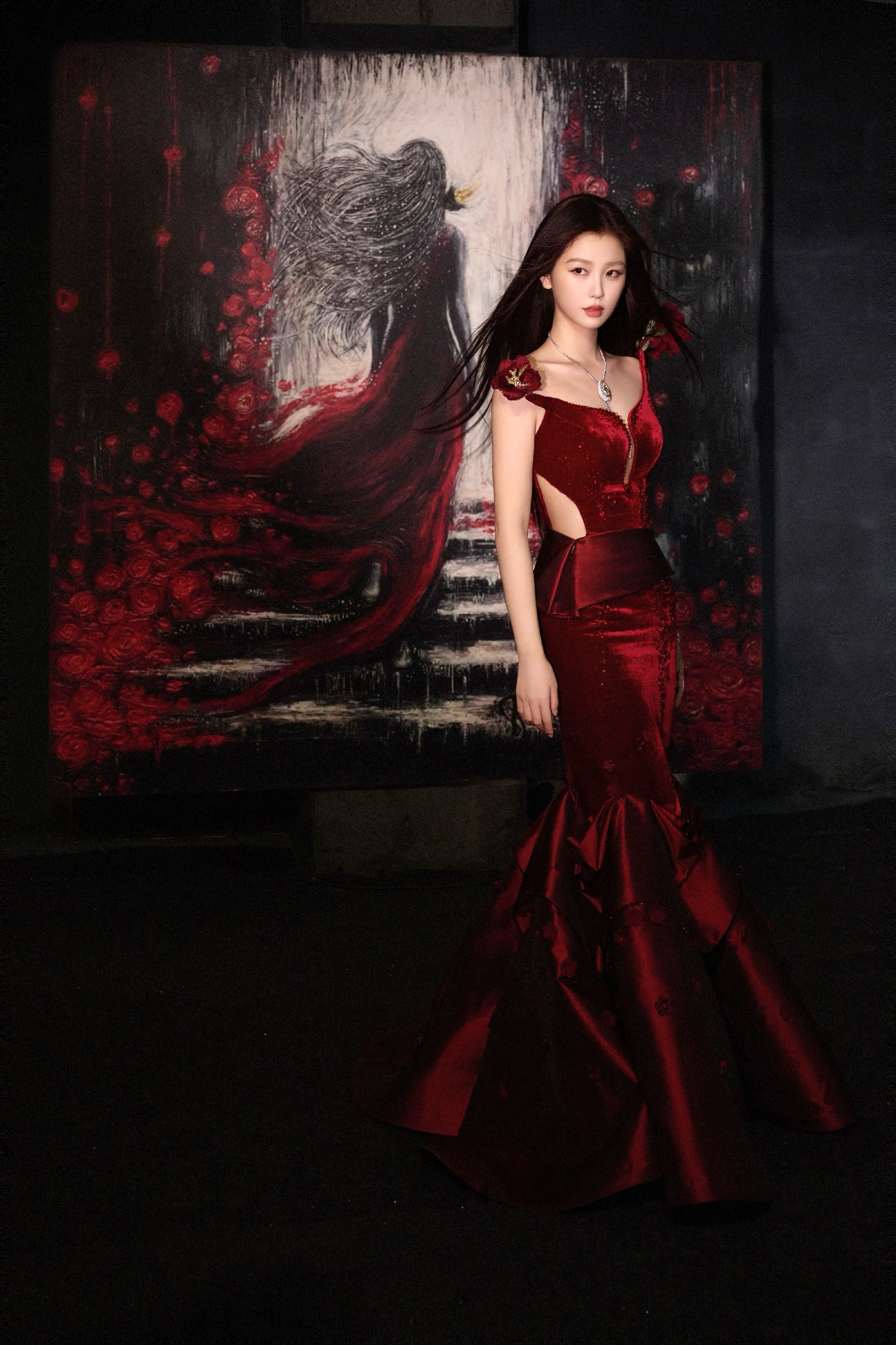 虞书欣,玫瑰色彩礼服大片,身姿轻盈热烈迷人。虞书欣