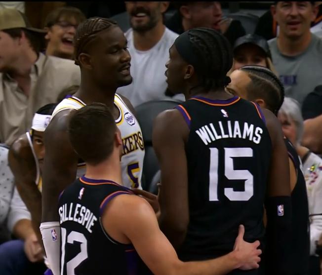 你俩也吵架了! 艾顿:你被湖人放弃了! 马威:你被太阳抛弃了! 两个弃子都能吵起来,可见湖人和太阳这场比赛的气氛,主角是詹姆斯和狄龙,配角是艾顿和马威,主打一个吵架和肉搏,正经战术什么的根本打不出来。 闹哄哄的一场比赛,技战术水平很低,非常低,主要看一个剧本和气氛,湖人最后领先20分被反超,依靠罚球拿下了胜利,判罚上问题不大,但罚43个球也很夸张了。