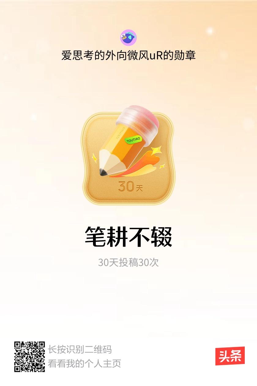 我获得了【笔耕不辍】勋章!邀请你一起集头条勋章、记创作之路!