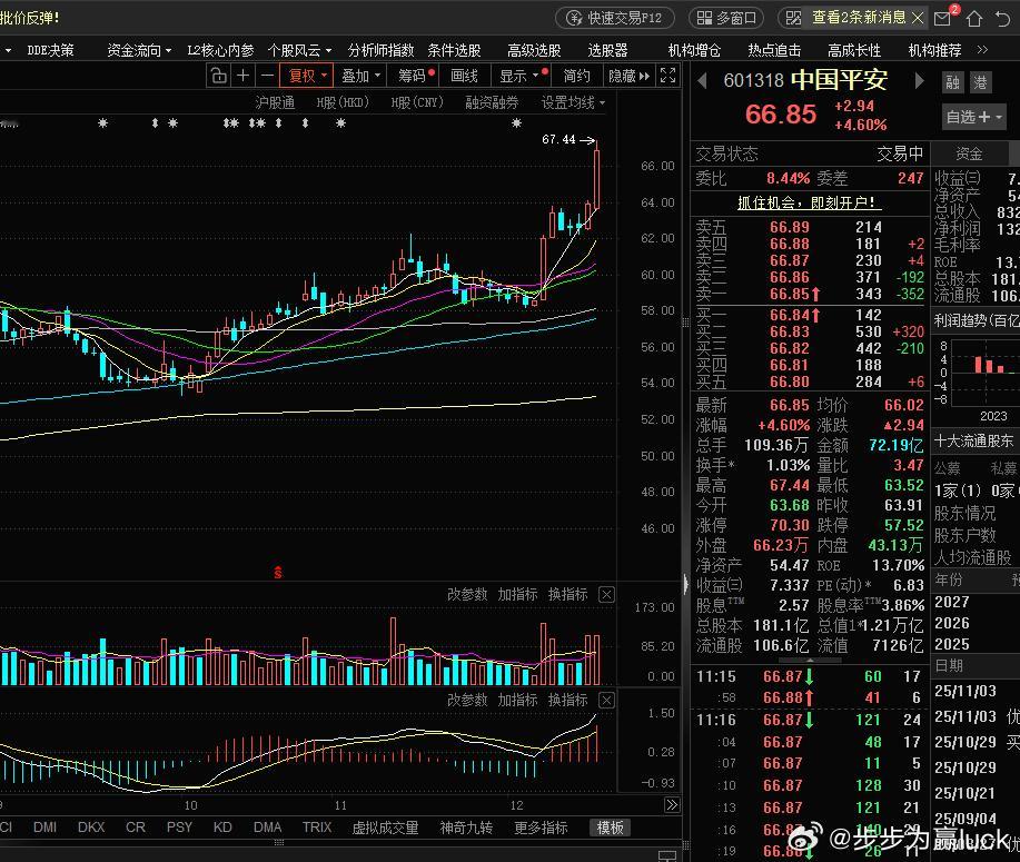 中国平安,又创新高了,有朋友问我怎么看?其实,这个一点也不奇怪,一切为了指数牛,要不了多久银行股也会起来。不过你不能追,你今天追进去,最起码站岗一个月,因为他可以换其他的权重来拉。财经股票