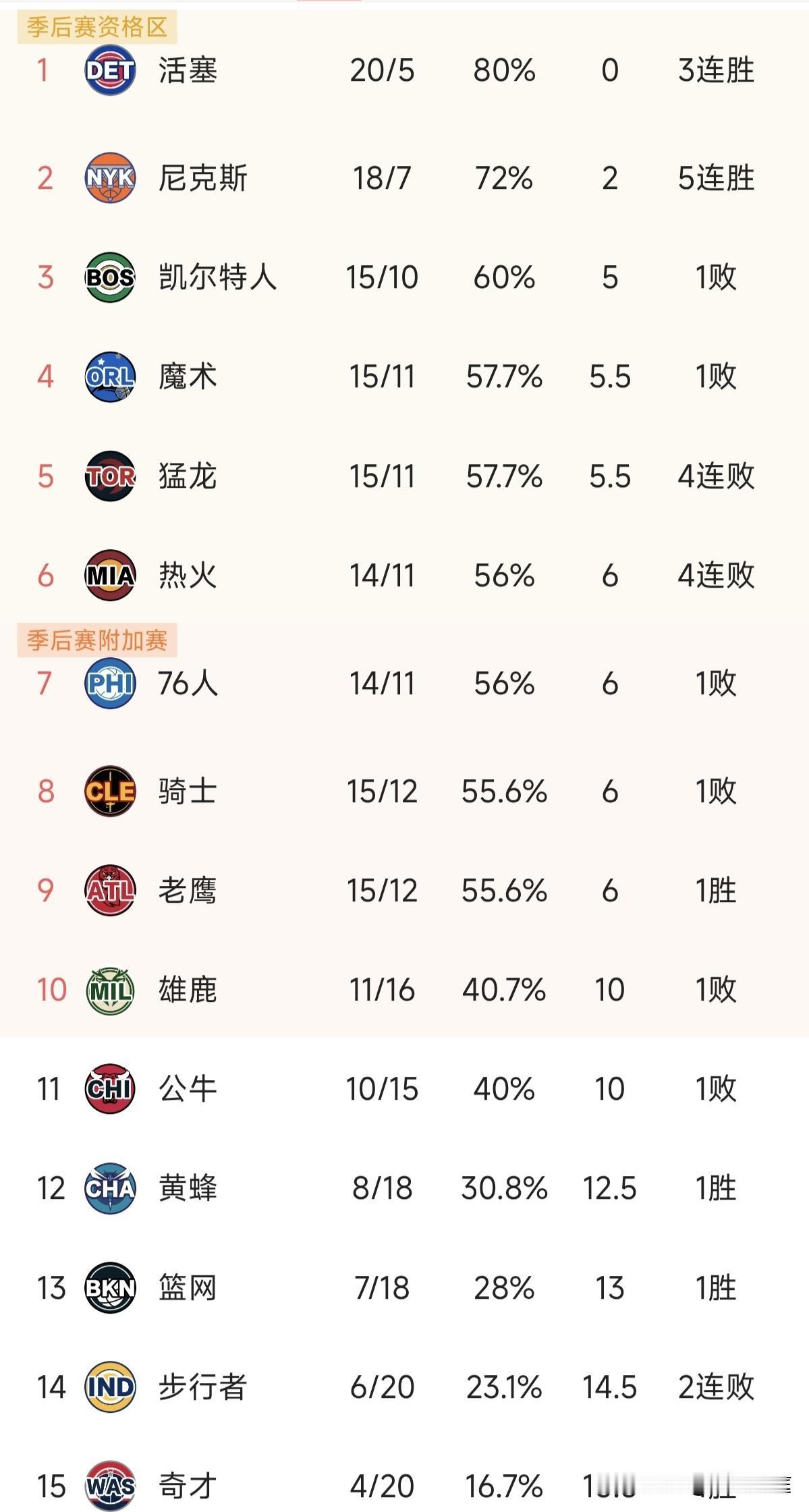 12月15日NBA东部球队排名出炉,前六今天都没有比赛,76人输给老鹰排名东部第七,马克西和特雷杨都缺席。倒数第一奇才赢了倒数第二步行者,篮网大胜雄鹿,字母哥赶快复出吧,现在雄鹿排名第十和倒数第一也只差5.5个胜场差。老鹰的约翰逊连续四场三双,关键是他第一个赛季真的是酱油角色,谁能想到现在数据直接逼近前五巨星。未来他的前途真的不可估量。