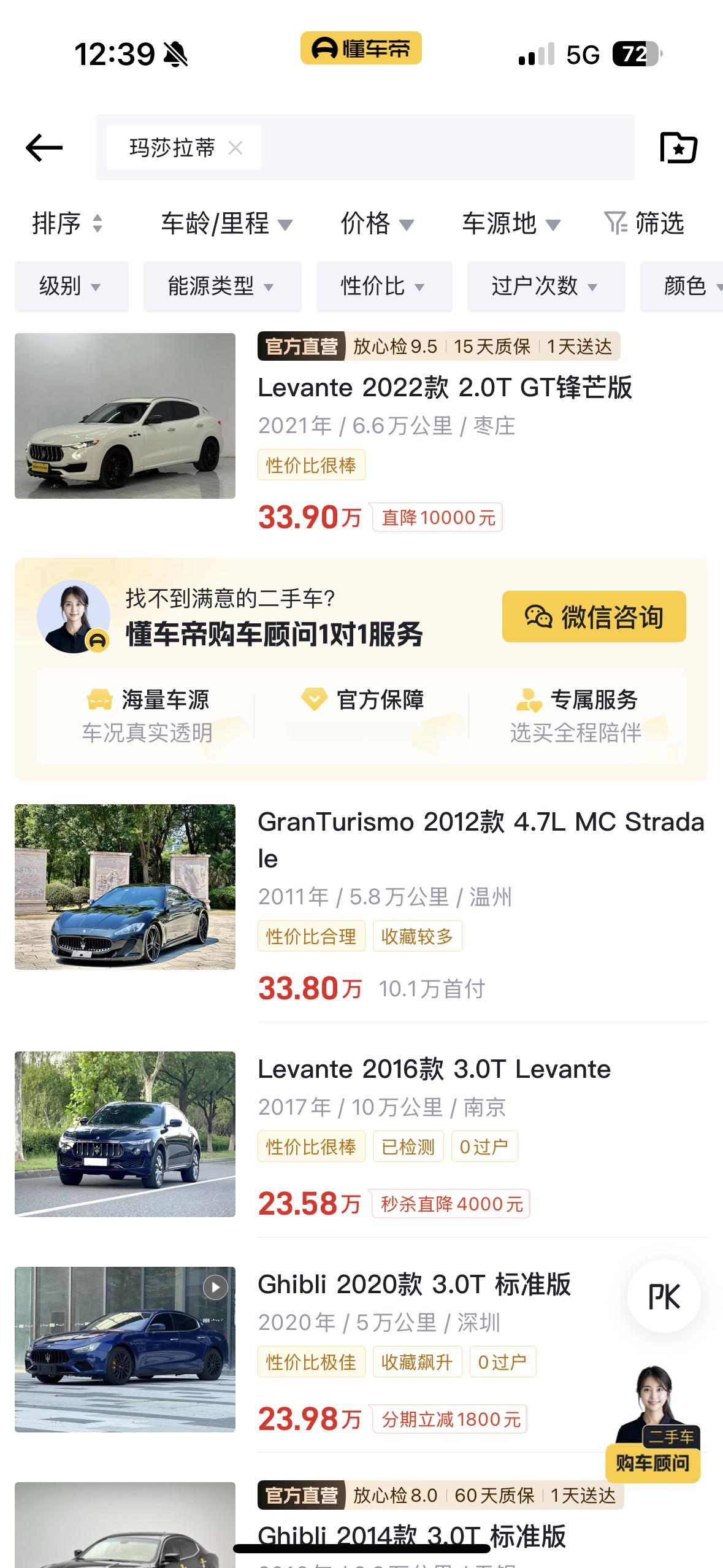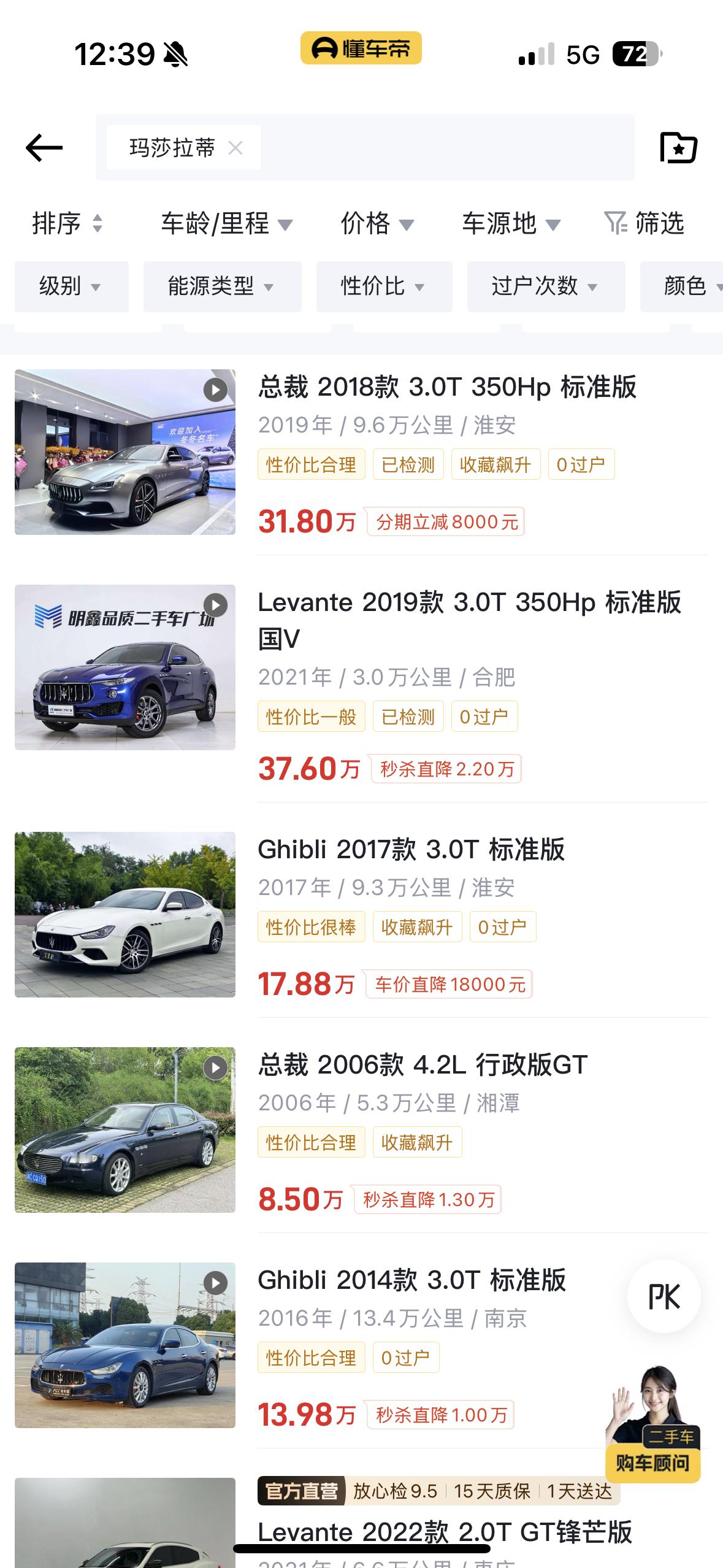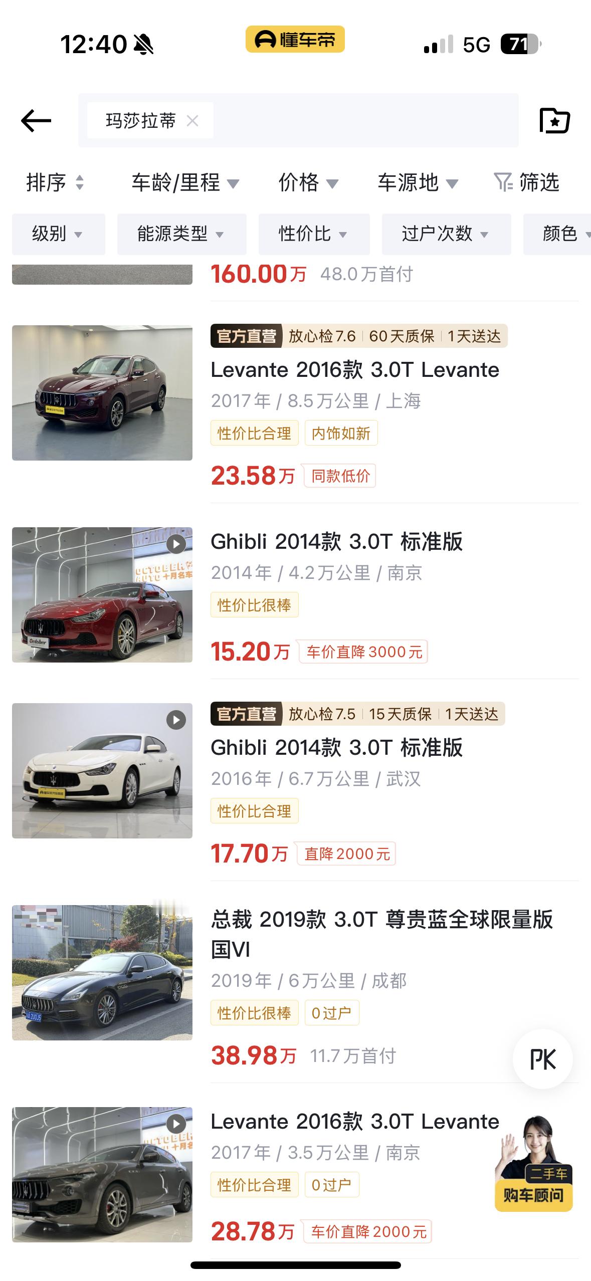 35万纯电玛莎拉蒂被一抢而空咋就这么想不开呀,35万买个最入门的格雷嘉二手玛莎拉蒂价格早就崩了30多万预算,总裁、Levante、GT、Ghibli随便挑 大V6,大V8,不香么?