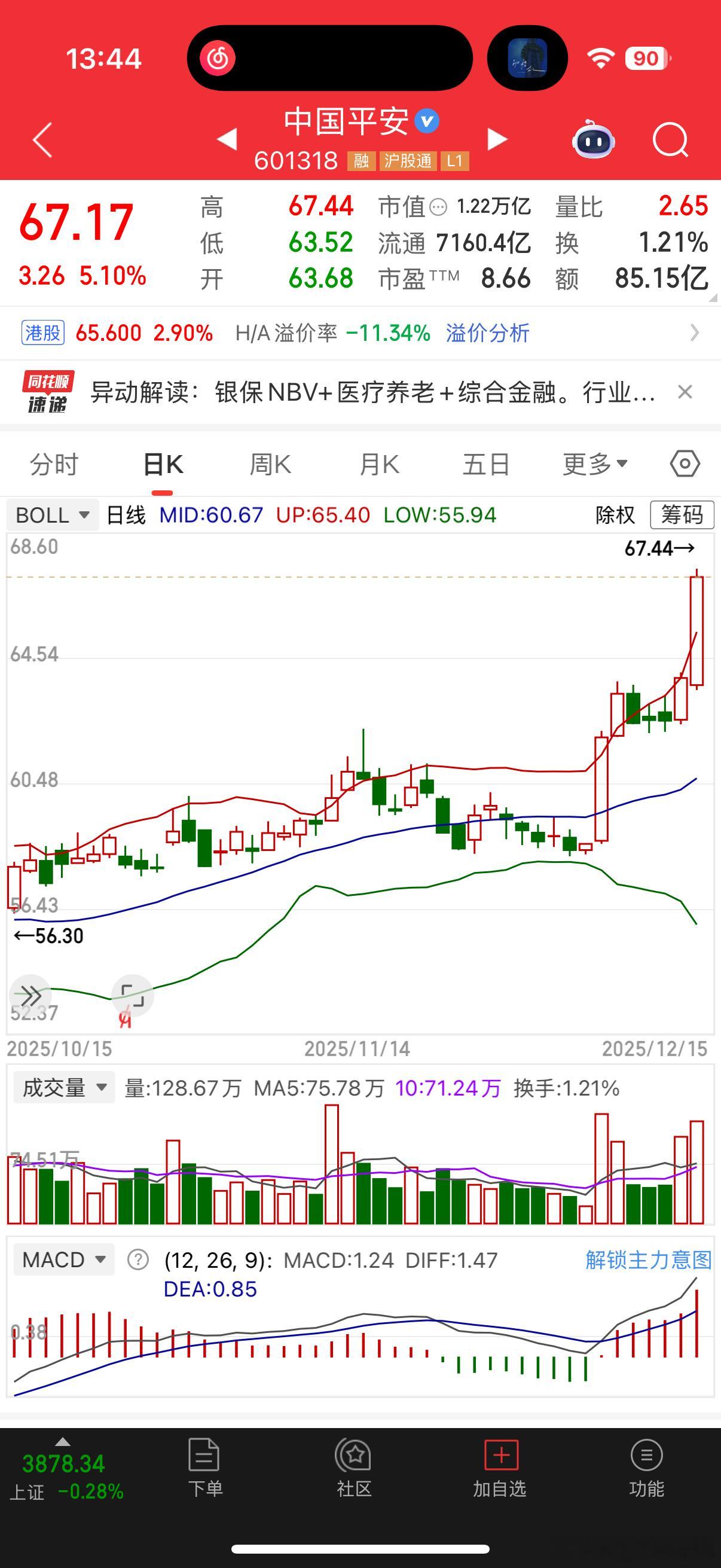 感觉人颠颠的,五大保险巨头逆势齐涨。$中国平安 sh601318$ 创四年新高,机构调研大量定期存到期,当前保险估值低位,配置性价比高(长线产品)