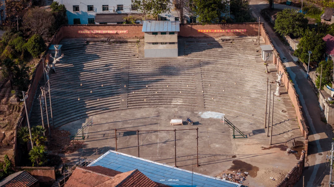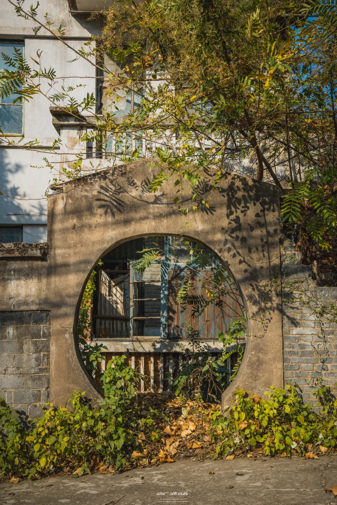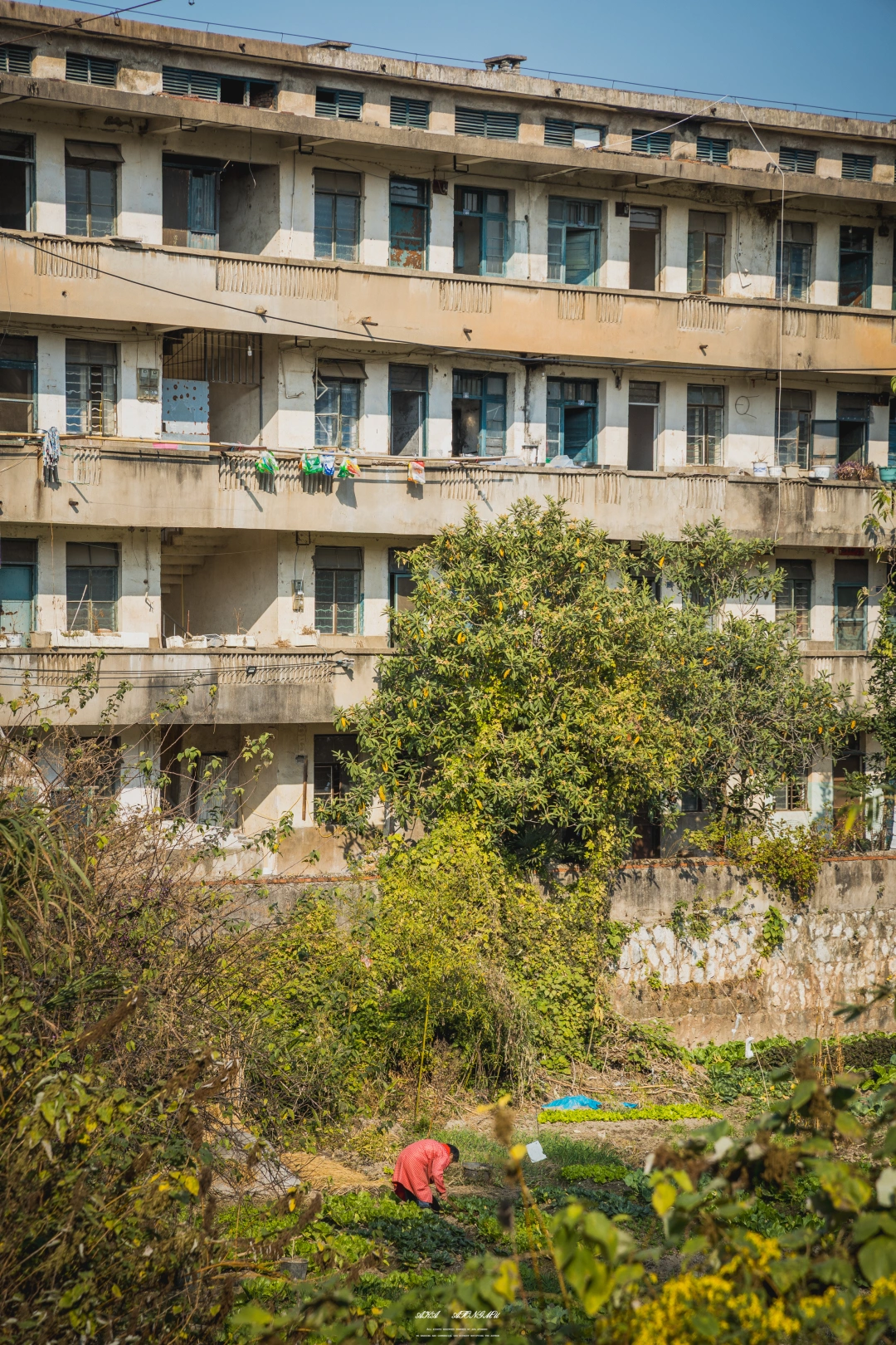 那些曾经人声鼎沸的办公楼,如今门窗破碎,墙皮剥落曾经整洁的职工宿舍楼,爬满了枯藤,楼梯间散落着腐朽的木板和不知名的野草,大礼堂的舞台幕布早已褪色,看台上的座椅东倒西歪,只有体育场上的标语随风飘扬: