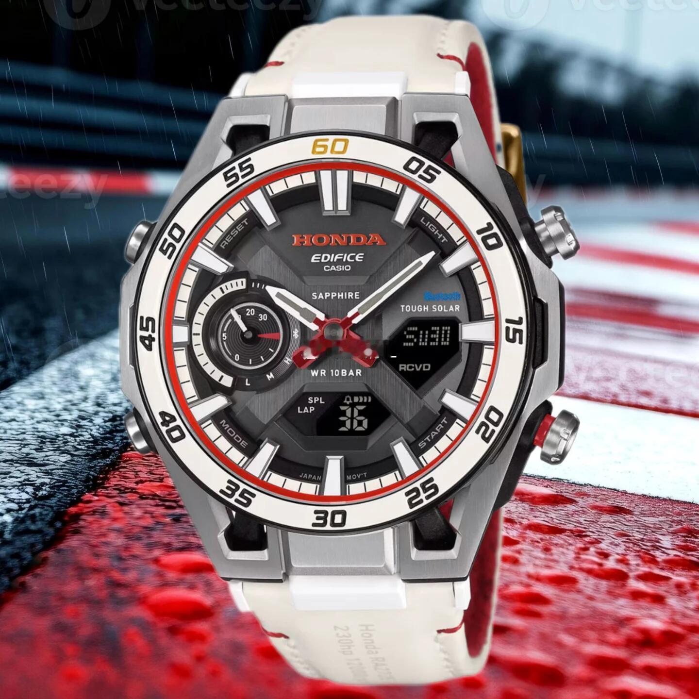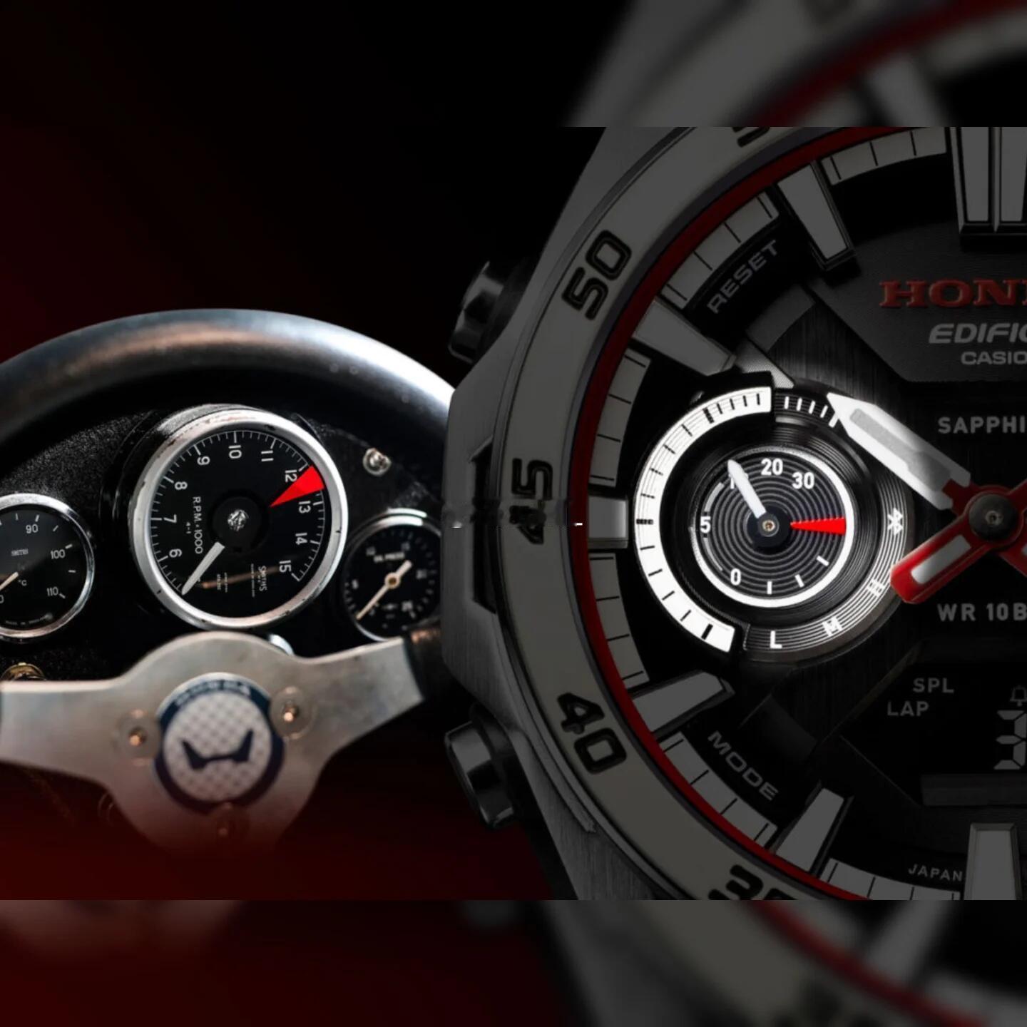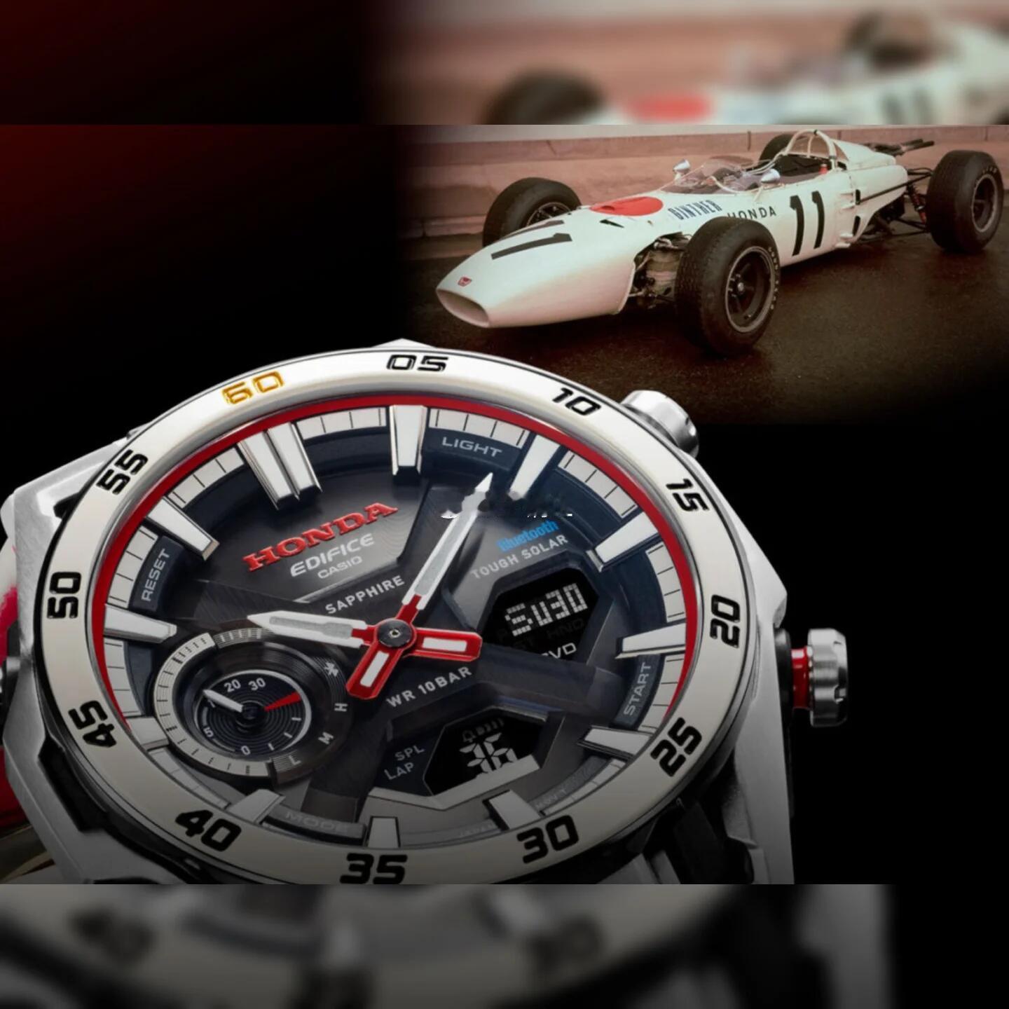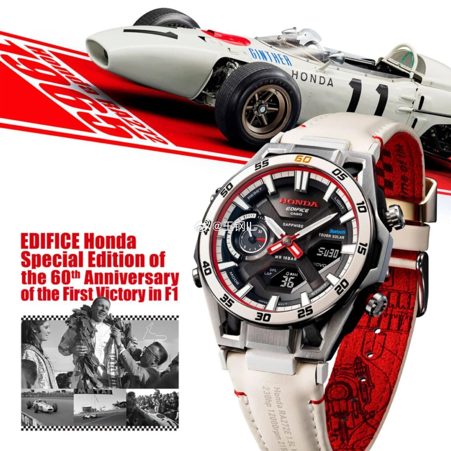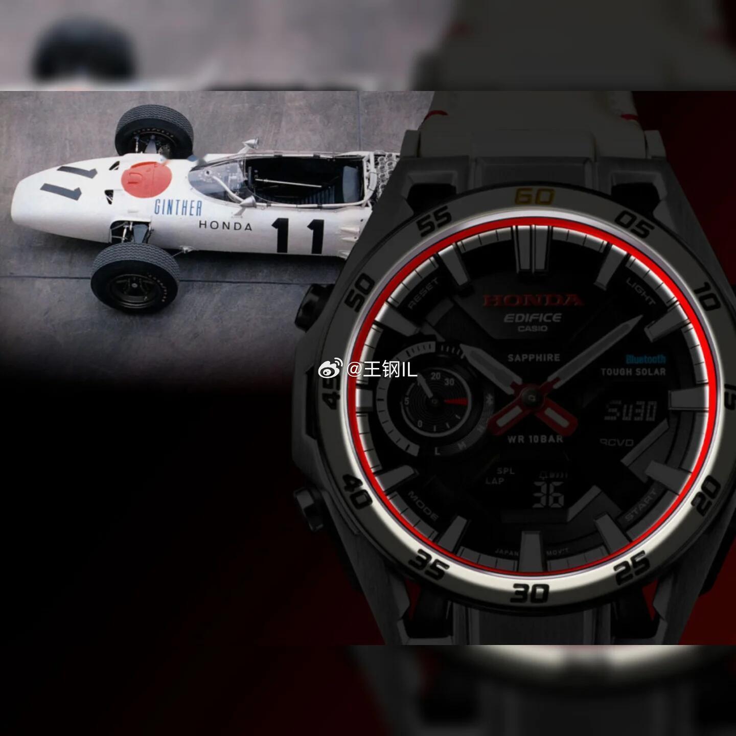 卡西欧与本田赛车全新联名款腕表,这款以ECB-2300为基础打造的联名表,设计灵感源自传奇赛车Honda RA272——这可是本田首台夺得F1冠军的王者战车!本田卡西欧