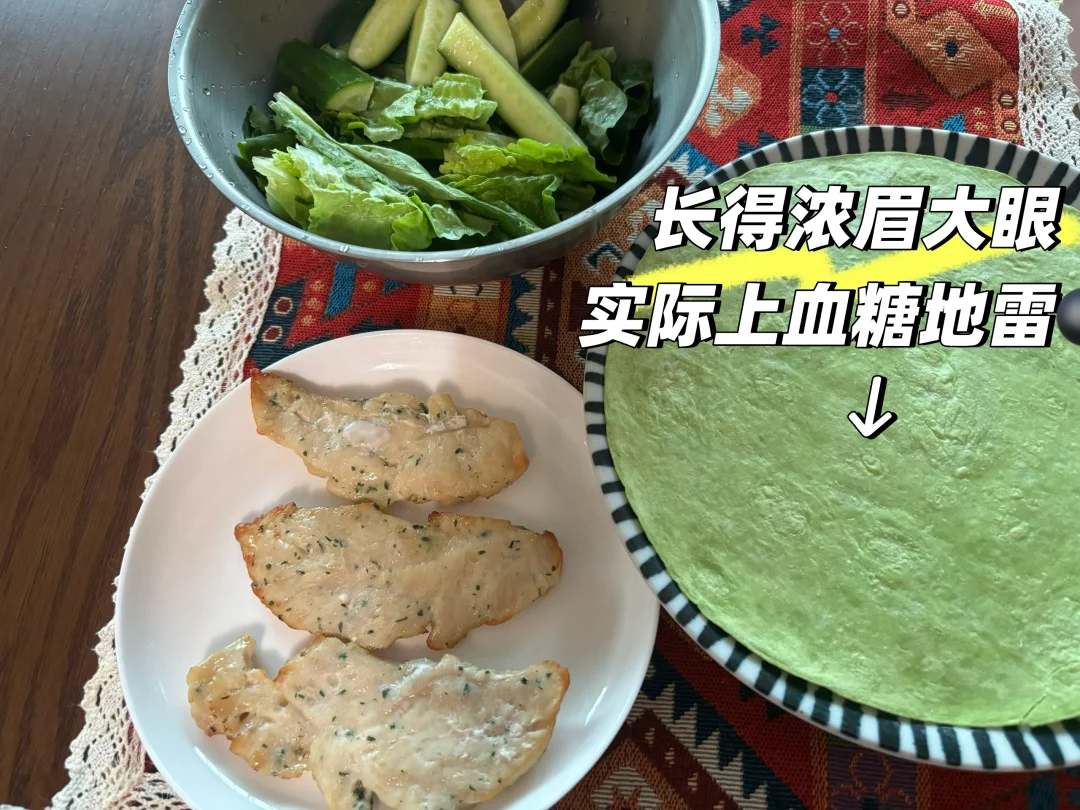 [禁R]粗粮卷饼:什么品牌我就不说了,粗粮膳食卷饼菠菜味。别看营养成分表里写着每百克24g碳水,实际非常升糖,可以说是我家隐藏非常深的血糖地雷。吃了好多次才终于确定导致我血糖直上8.8的是那个不起眼的我只吃了一张(41克)的饼…