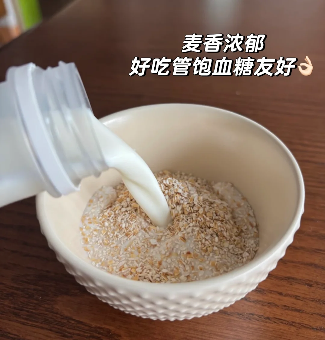 [打卡R]低GI燕麦:直接泡热牛奶,方便、好吃、血糖友好、饱腹感强,晚上来一包可以帮助入睡。