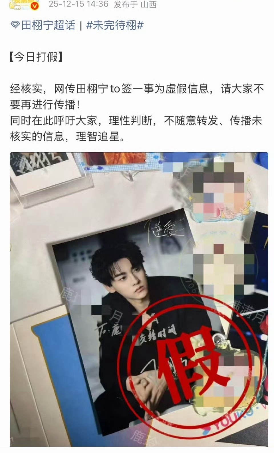 田栩宁和梓渝亲签的to签这个事,都被两家粉丝打假了,晒签名的这个人确实是很有名,所以不少人相信了。这个如果工作室出来打假可信度会高点,但是没必要为了这个事专门出来,不然热度更高了。所以真的假的也没啥吧,明天就没人记得了