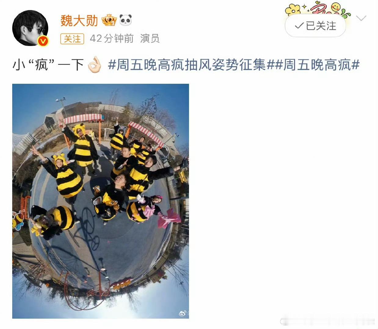 周五晚高疯抽风姿势征集《周五晚高疯》整活不停!杨迪铁裤衩魔性出圈,魏大勋花式躺平超有梗,徐志胜金句频出狂甩包袱,速来秀抽风姿势,一起承包周五笑点!周五晚高疯