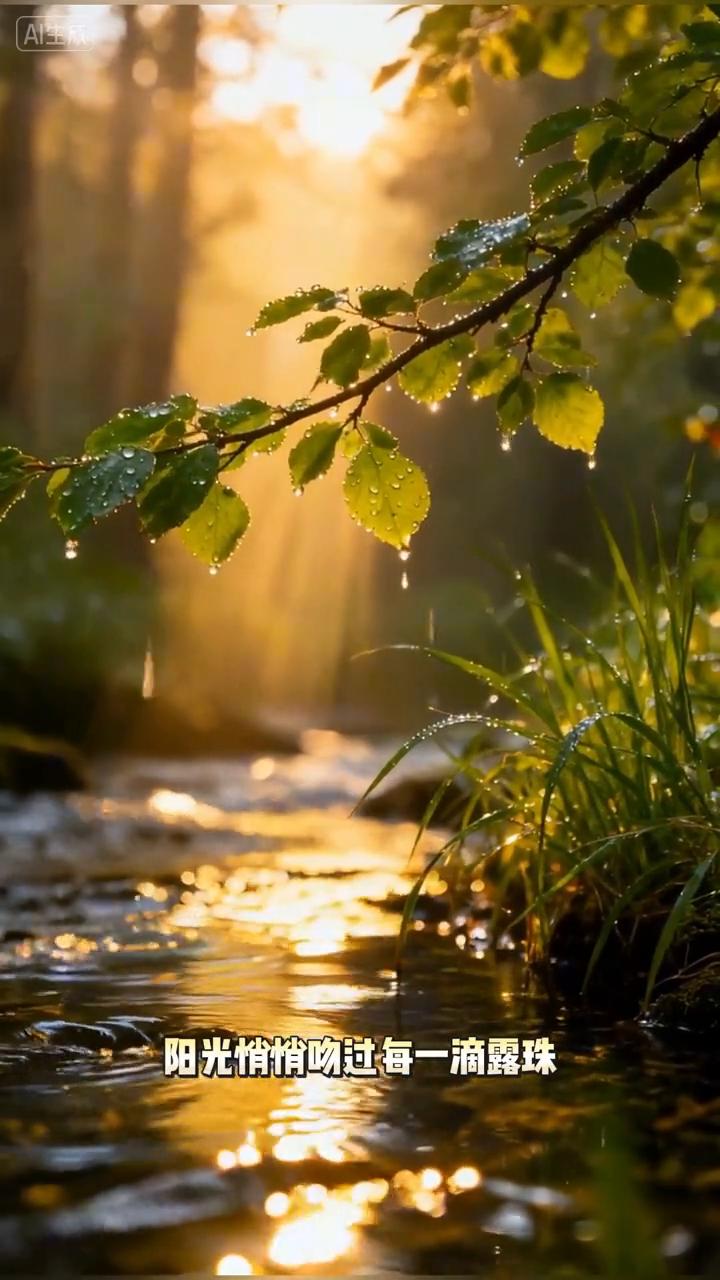 清晨的森林醒了,阳光悄悄吻过每一滴露珠。溪水带着温柔绕过苔藓包裹的石头向前跑,落叶跟着溪水跳舞,每一片都在诉说秋天的故事。溪水终于找到家,小湖抱着红枫的影子静静摇晃,晚霞给湖面披纱,白鹭驮着夕阳把治愈留在心里。一天结束了,自然的温柔你感受到了吗?