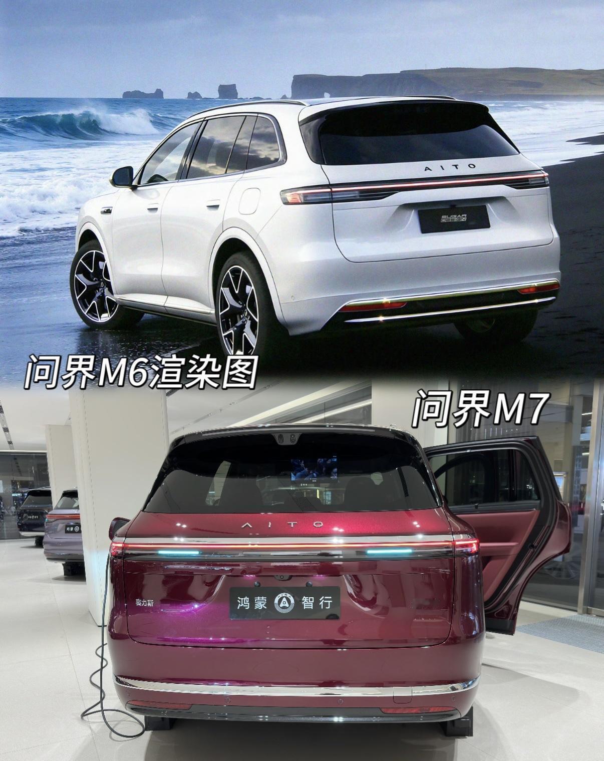 问界M6渲染图🆚全新问界M7,乍一看两款车几乎一模一样,具体细节还是得等官图。 余承东在央视直播中明确表示问界56789产品矩阵将在2026年完善。问界M6预计2026年第二季度上市,瞄准25万级家庭SUV市场,看来问界M5离改款也不远了。