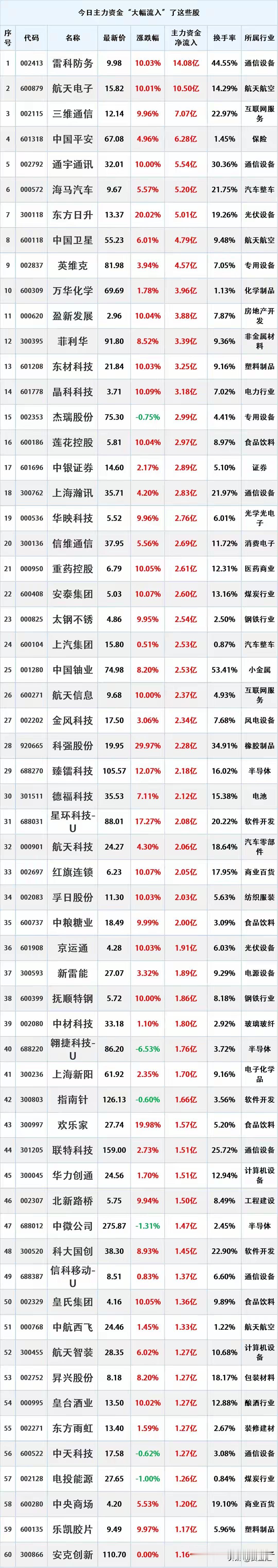 资金入场,12月15日主力资金大幅流入的股票名单。 资金流入是指在一定时期内(如一天、一周等),主动买入某只股票的资金量大于主动卖出该股票的资金量。主动买入是指投资者以卖方的报价直接成交,显示出投资者对该股票的积极购买意愿。
