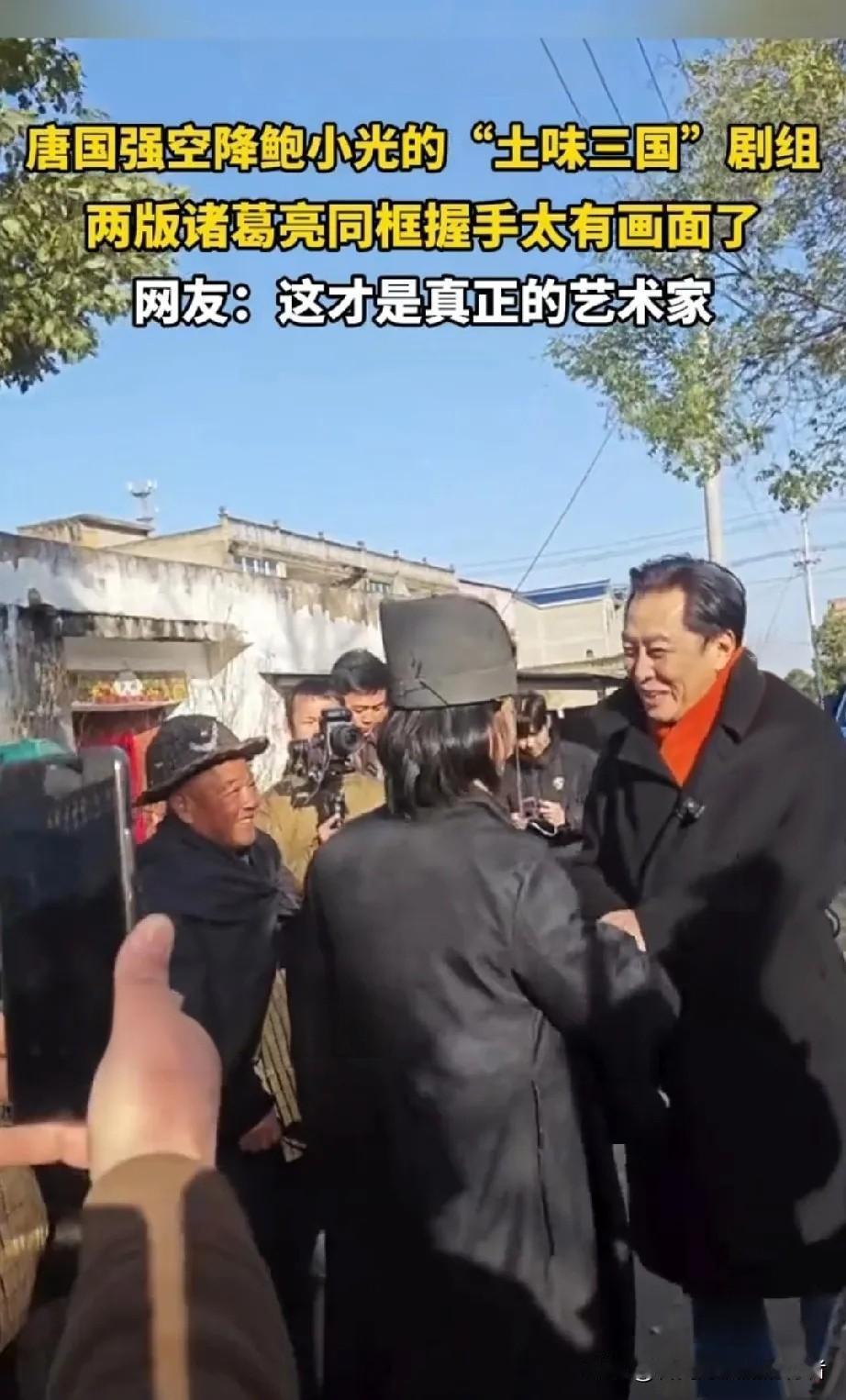 这或许是流量时代最动人的一幕:当殿堂级艺术与泥土深处的表达碰撞,迸发出超越娱乐本身的力量。 从“赵四”刘小光的持续助阵,到唐国强的躬身探班,再到企业家的自发赞助,“土味三国”早已不是自娱自乐的草台班子。它像一块质朴却充满生命力的磁石,吸引着不同维度的关注。流量涌向这里,不再是简单的“蹭热度”,而是一场自上而下对草根创造力的致敬与赋能。 锅盖为盾、麻将席为甲,电动车上演“赤兔马”,这些看似荒诞的创意,恰恰消解了经典的厚重壁垒,让三国精神以最生猛鲜活的方式,重返乡野阡陌。它火的不只是猎奇,更是那份五年如一日的赤诚,是文化在泥土里扎根、生长出的另类繁花。 当顶尖艺术家与乡村老人因同一个角色而握手,我们看到的不是流量的胜利,而是文化生命力最本真的共鸣——无论庙堂之高,抑或江湖之远。