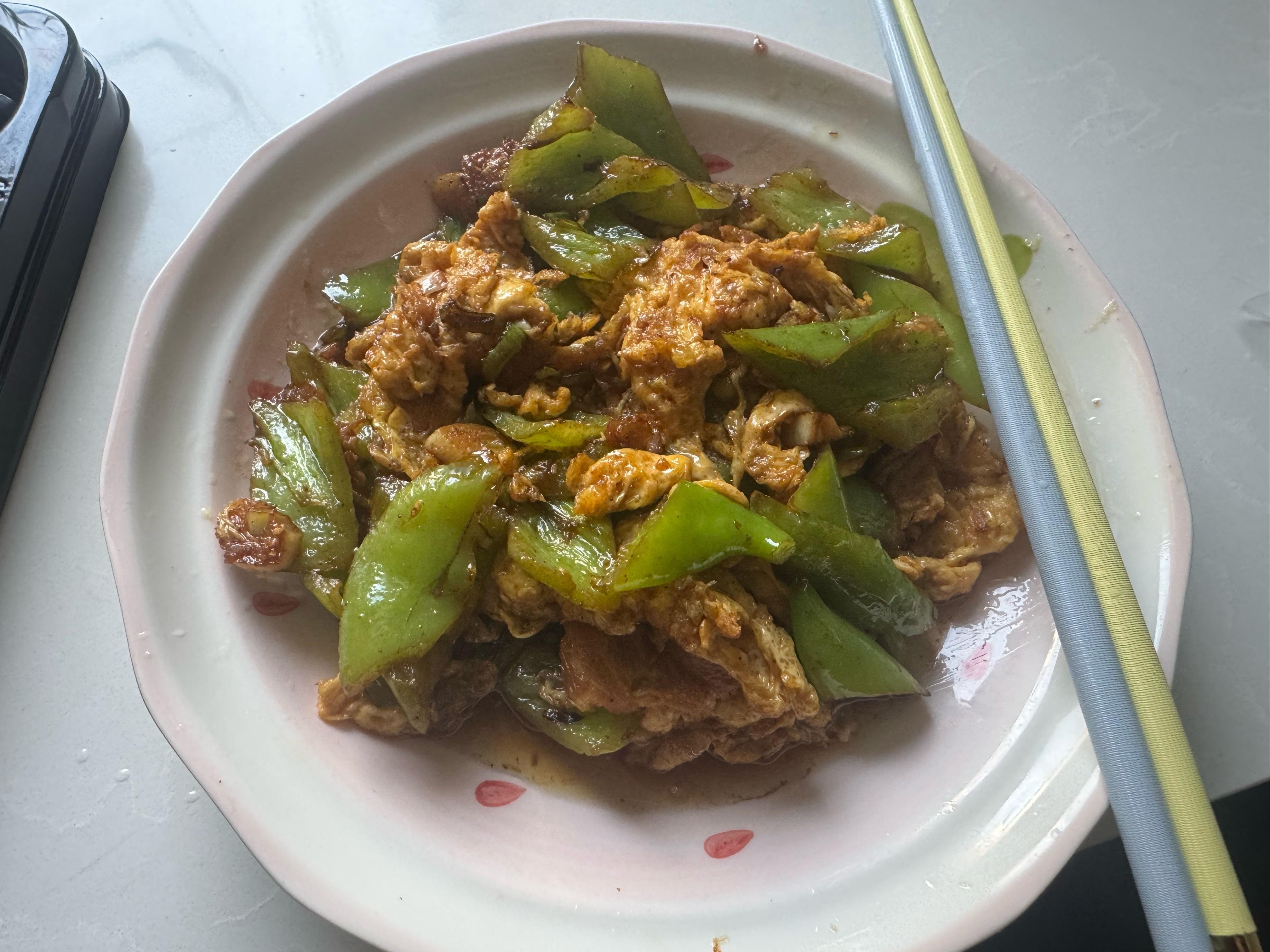 中午媳妇给我炒了个鸡蛋,自己再搞快牛肉。完美。