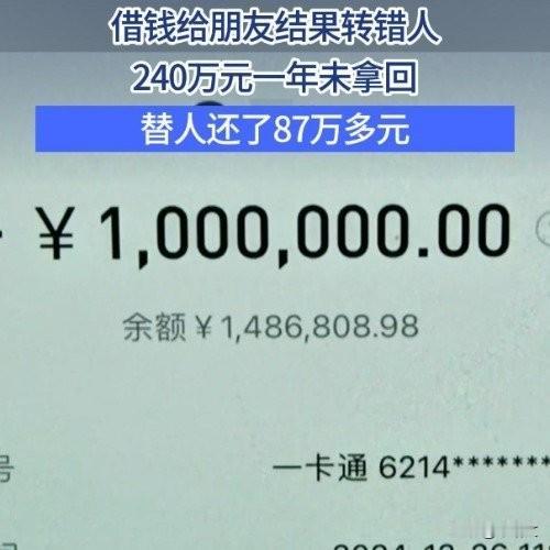 女子转错240万,收款方欠700万!87万被划走,这钱还能要回吗? 去年12月26号,宁波李女士的一个疏忽,把240万巨款转错了人。本来是帮朋友还305万,要转给共同朋友当中转,结果打电话分神,把钱转给了另一个名字部分重合、曾经认识的人。 发现转错后,李女士赶紧找银行、报警方,还联系收款方,可对方压根联系不上。没办法只能起诉,今年2月法院判了,说收款方是不当得利,得返还240万,本以为这事能了结,没想到更闹心的在后面。 原来收款方早就欠了一屁股债,光是徽商银行的个人经营性贷款,逾期本金就超700万,账户早被多家法院查封冻结了。李女士转进去的240万,87.4万在2月就被鄞州法院划走,抵了对方的其他债务。 李女士不甘心,提了执行异议,想把自己的钱要回来。可上个月法院裁定驳回了,说人家查封冻结在前,她的权利没法对抗先行执行,这波操作让她彻底懵了,好好的钱怎么就成了别人的偿债款。 这里头有个法律常识,货币是“占有即所有”,钱进了对方账户,就认定是对方财产。李女士的不当得利只是普通债权,没有优先受偿权,没法跟之前的强制执行比。 现在李女士又提起了执行异议之诉,案子还在审,快一年了钱还没着落。这事也给大家提了醒,转账尤其是大额资金,可得睁大眼睛,核对清楚再确认。 钱没了能通过法律维权,但多费时间多费心。大额转账无小事,谨慎核对是底线,一时疏忽的代价,可能是追不回的血汗钱。希望李女士能早日拿回自己的钱,也愿大家都能避开这种糟心事。