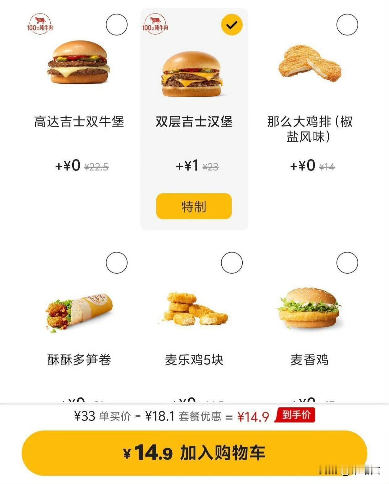 麦当劳穷鬼套餐没涨?热门款偷偷变14.9,六年三涨还挖得出平替吗 最近麦当劳涨价的事儿闹得挺热闹,不少人喊着“穷鬼套餐涨了一块”,但仔细一看,基础款13.9元还在,就是热门的双层吉士组合涨到14.9了。这波操作,真是让人有点摸不着头脑。 说没涨吧,六年都调三次价了,最早才12.9元,现在热门款变相涨了,巨无霸、麦乐鸡也悄悄提了一两块。说涨了吧,基础套餐还撑着价,主打一个“精准拿捏”打工人钱包。 打工人这边反应也挺分裂,月底凑活饭的心疼这一块钱,觉得日积月累也是笔开销;可嘴上吐槽着“吃不起了”,身体却很诚实,该续购还是续购,毕竟10多块能搞定主食+饮品,性价比没谁了。 大家为了省这几块钱,把平替都挖疯了。板烧鸡腿堡的同款半成品网上能买到,自己用空气炸锅做,成本才8块多;蓝威斯顿的薯条,就是麦当劳同款细薯,2公斤才30多,能吃好几顿。 麦当劳回应说涨价是因为运营成本变了,这话咱也能理解,食材、房租、人工哪样不涨价。但打工人要的其实很简单,要么价格稳住,要么分量实在,别又涨价又悄悄缩水。 其实不管是品牌调价还是咱找平替,核心都是图个性价比。打工人的午餐预算就那么多,能吃到实在的东西才愿意一直买单。性价比才是硬道理,真诚定价比玩文字游戏,更能留住人心。