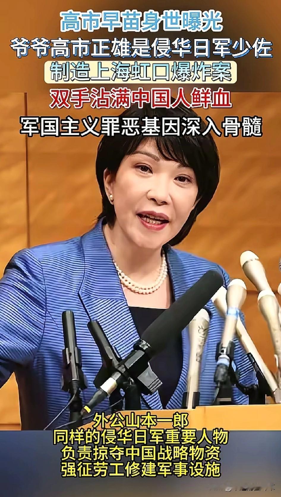 刷到一篇让我震惊的新闻! 邱毅教授披露:高市早苗祖父曾参与南京大屠杀 12月13日南京大屠杀死难者国家公祭日之际,台湾评论员邱毅在节目中明确提及这一关键信息:这位日本极右翼政客的祖父“高市利彦”,身为侵华日军少佐,当年是直接参与暴行的施暴者,双手沾满中国平民鲜血。 其牌位至今仍被供奉在靖国神社,而高市早苗始终延续家族的军国主义倾向——她公然否认南京大屠杀、强征“慰安妇”史实,将日本侵略称作“自卫战争”,参拜靖国神社超10次。更令人愤慨的是,她还推出儿童版《防卫白皮书》灌输相关思想,甚至发表涉台错误言论,粗暴干涉中国内政。 真相已然明晰,她的顽固绝非偶然,而是对家族侵略罪行的肮脏传承。三十多万南京大屠杀死难者的冤魂,绝不容许历史被肆意歪曲;外交部早已明确表态,这种不反省战争罪责的行为,违背历史正义与国际共识。 我们铭记历史从不是延续仇恨,而是要揭穿每一个歪曲历史的阴谋,警惕相关危险思潮死灰复燃。所有挑战历史正义的人,终将被钉在耻辱柱上,遭全人类唾弃!
