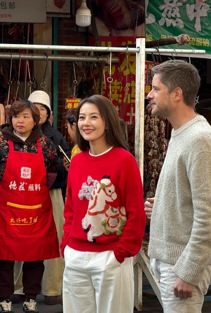 就在成都玉林菜市场遇到水灵灵的高圆圆了 她梳着披肩长发,穿着红色毛衣配白色宽松裤,装扮时尚又非常喜庆,好漂亮迷人!