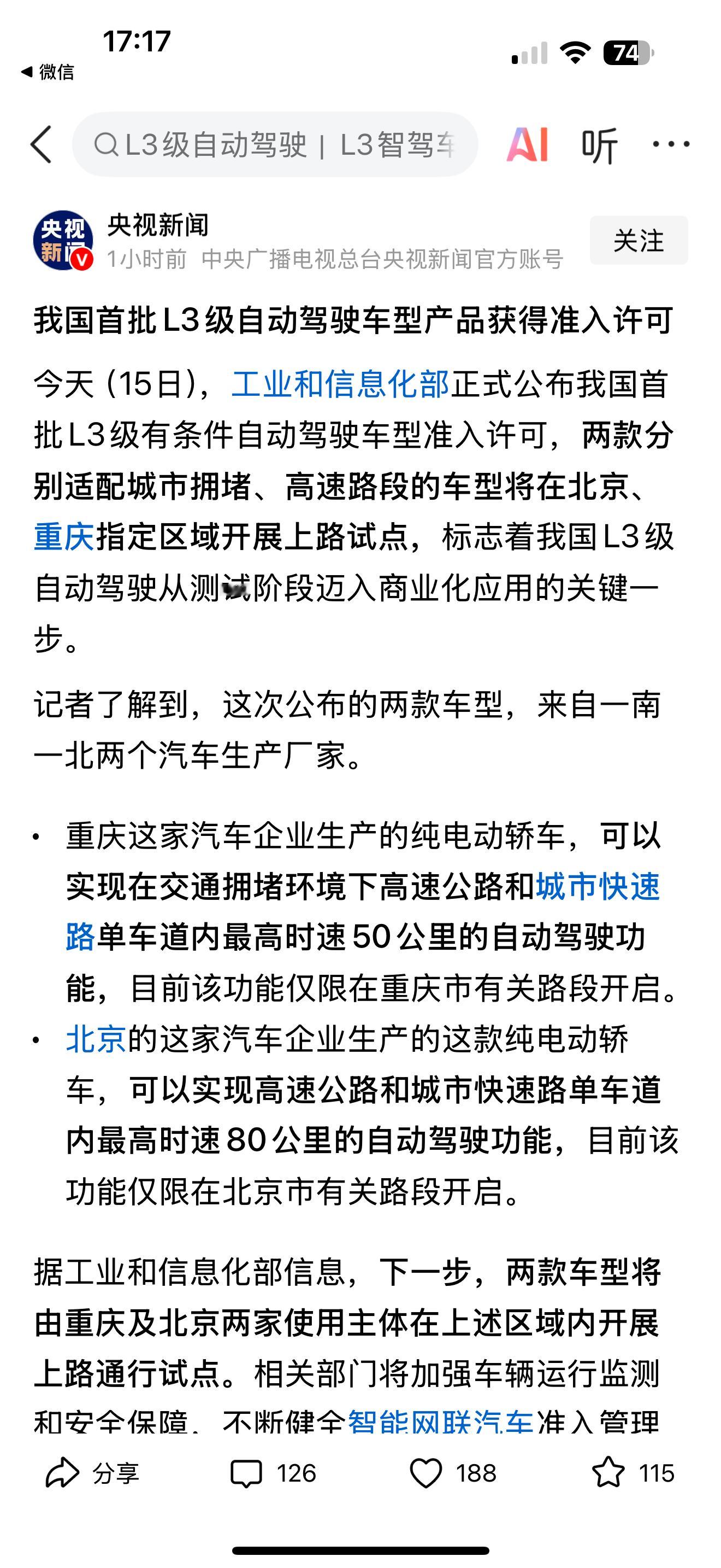 长安牌 SC7000AAARBEV 型纯电动轿车(对应车型:长安深蓝 SL03)适配重庆指定路段,支持交通拥堵环境下高速 / 城市快速路单车道自动驾驶(最高车速 50km/h)。极狐牌 BJ7001A61NBEV 型纯电动轿车(对应车型:极狐阿尔法 S6)适配北京指定路段,支持高速 / 城市快速路单车道自动驾驶(最高车速 80km/h)。