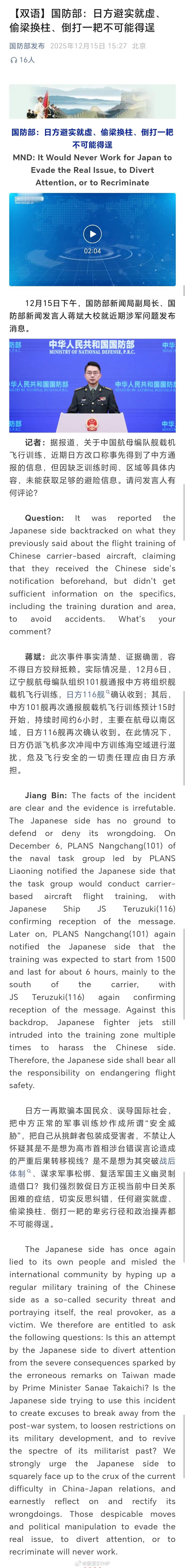 日方避实就虚偷梁换柱倒打一耙不可能得逞国防部:日方避实就虚、偷梁换柱、倒打一耙不可能得逞
