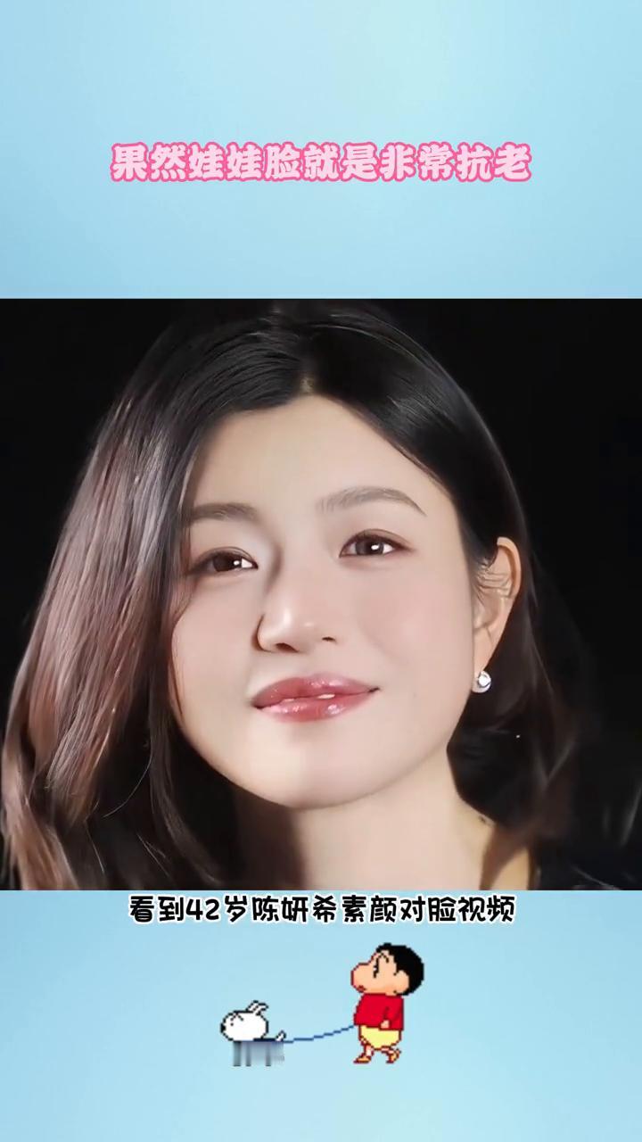 果然娃娃脸就是非常抗老。 果然娃娃脸就是非常抗老。看到42岁陈妍希素颜对脸视频,感觉胶原蛋白都快溢出屏幕了,而且自然到就是妈生感的脸。难怪这个年纪的她可以和周柯宇搭戏,两人站一起根本看不出年龄差,离婚后的女人状态果真是越来越好了。