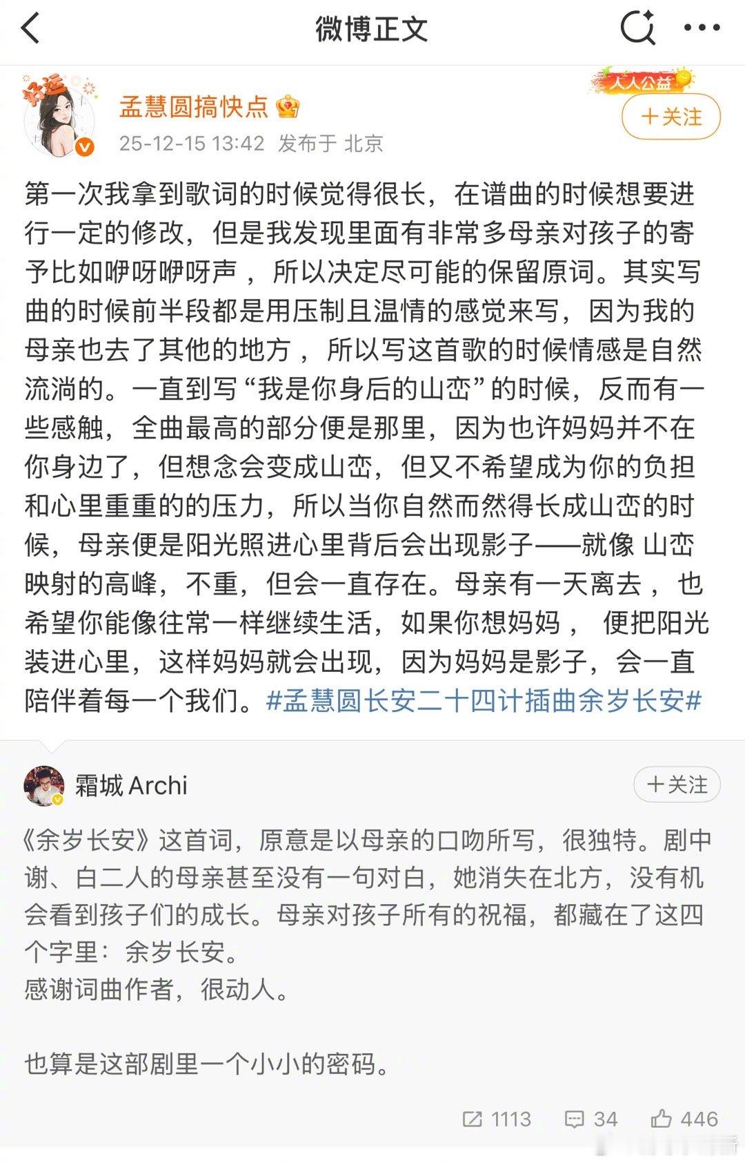 孟慧圆长安二十四计杀我别用亲情刀 孟慧圆的歌声+《余岁长安》的剧情=暴击!亲情线的遗憾被旋律放大,谢淮安的孤苦、母亲的牵挂都藏在“余岁长安”里,加上歌手本人的情感注入,这波亲情刀谁顶得住,直接听哭~