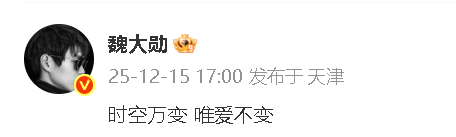 魏大勋纪念出道17周年魏大勋 时空万变唯爱不变 魏大勋发文纪念出道17周年:“时空万变 唯爱不变。”