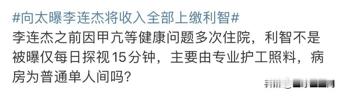 李连杰住院利智被曝每日仅探视15分钟李连杰之前因甲亢等健康问题多次住院[衰]有网友爆料,李连杰住院利智每日仅探视15分钟[思考]但李连杰都愿意把所有积蓄交给利智保管了,利智肯定也有可取过人之处吧[灵光一闪]