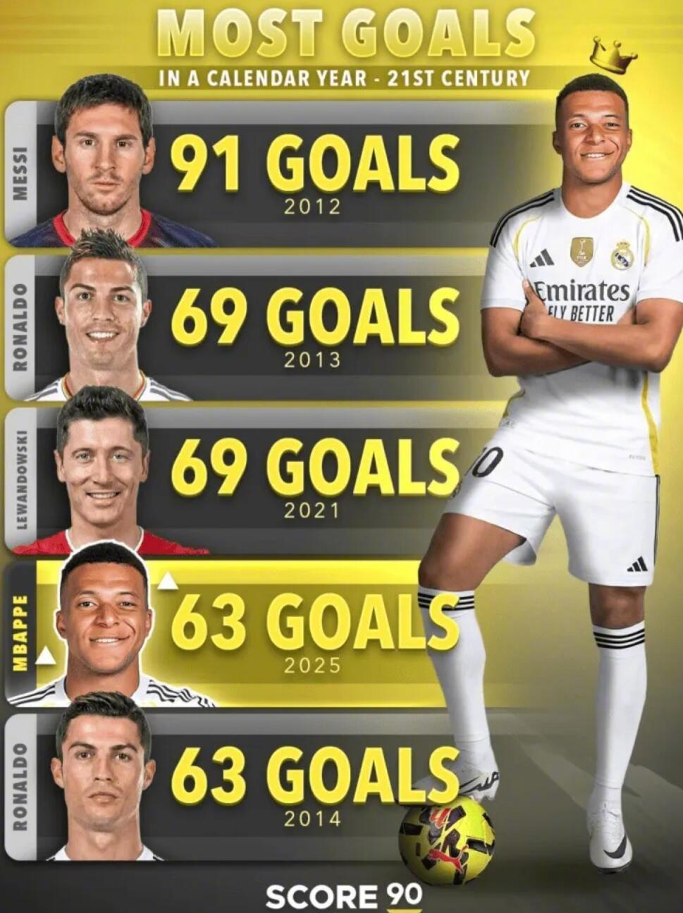 绿茵资讯! ★进球机器! 哈兰德的曼城生涯进球数来到147球,升至队史射手榜第2位,超越了海耶斯的146球,身前只剩阿圭罗的260球纪录等待打破。 ★红军传奇! 萨拉赫为利物浦制造了277粒英超进球,超越鲁尼,创下英超史上代表单一俱乐部制造进球数纪录! ★姆巴佩在西甲生涯前50场比赛里,已经打进了47球,仅次于C罗的48球。 ★姆巴佩在2025年已经打进63球,在本世纪单一自然年进球纪录中排名并列第4。 ★最近有点忙! 福登连续四场比赛进球,一共贡献了6球1助攻,状态非常火热。 ★皇马前锋罗德里戈上一场欧冠对曼城时结束了32场的进球荒,本轮西甲对阿拉维斯连场破门,时隔329天再度在西甲破门。 ★维拉近11场英超比赛取得了10胜1负的战绩。 ★维拉9连胜,创造队史111年来的最长连胜纪录!英超6连胜,也是队史首次达成!