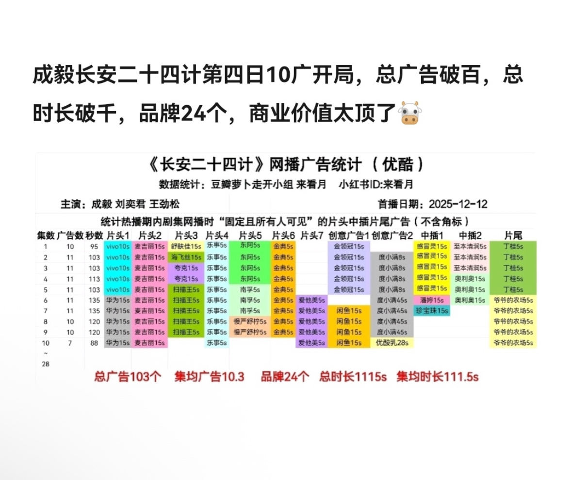 长安二十四计才播10集总广数量破百❗️总时长破千❗️成毅招商top生实至名归。