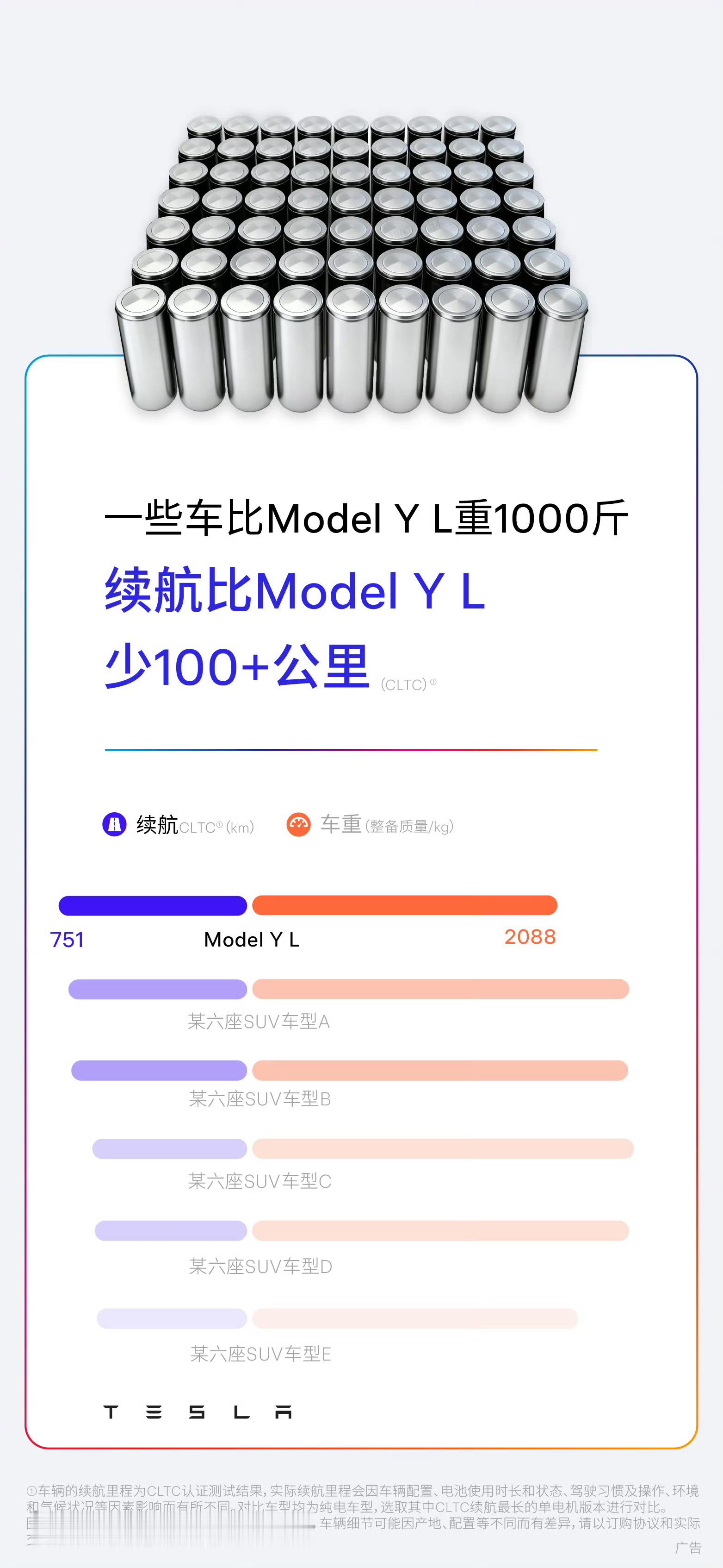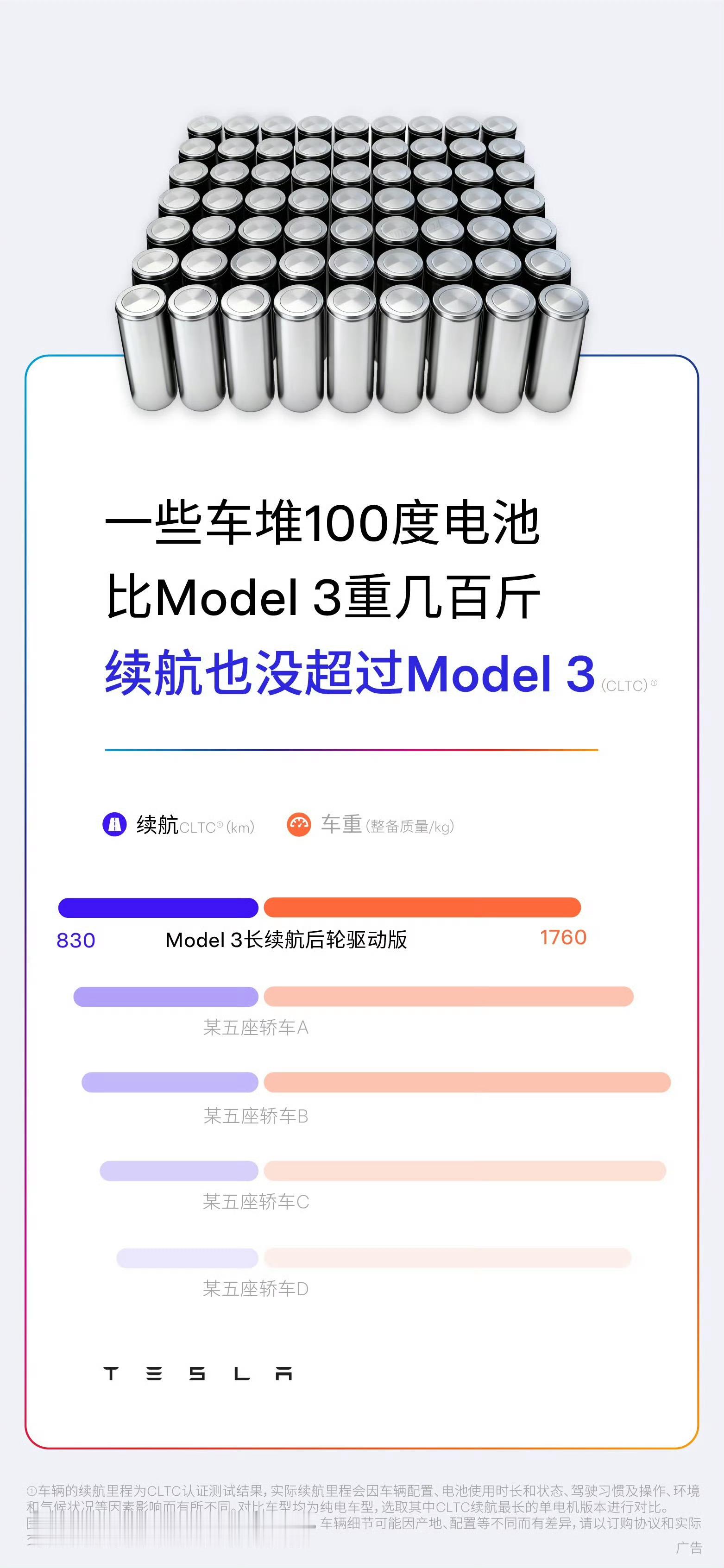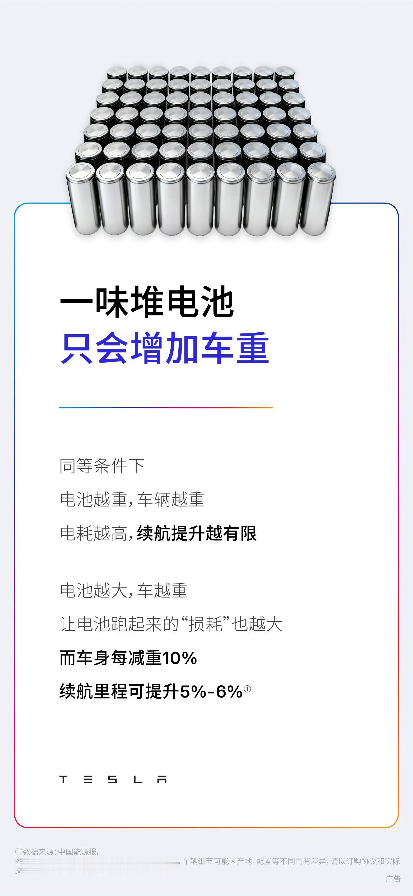 特斯拉:一味堆电池只会增加车重