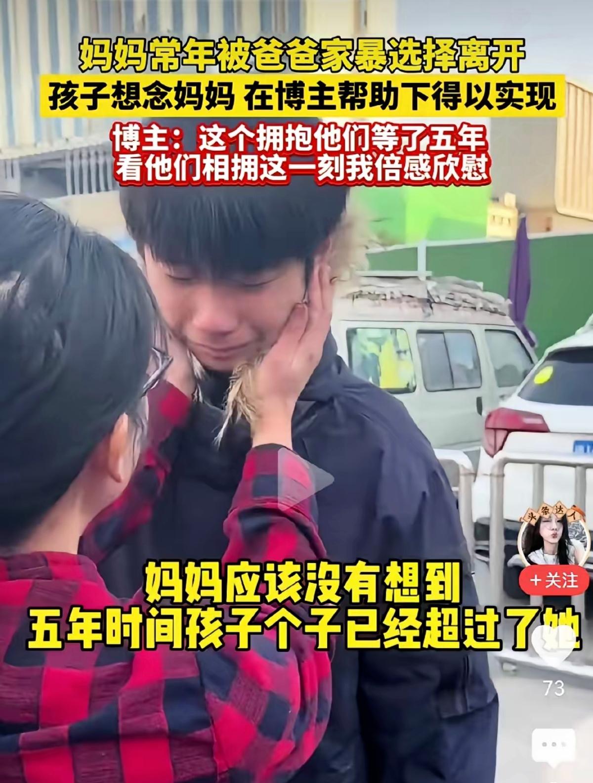 家暴从来不是“家务事”,而是毁掉两代人的钝刀子!那个妈妈住院时偷偷逃走的背影,藏着多少绝望只有她自己知道。 五年里孩子从不及妈妈肩头长到高出半个头,思念没被时光冲淡,反而成了心底最沉的牵挂。妈妈不是不爱,是家暴的阴影让她连回头看一眼都胆战心惊,这种骨肉分离的痛,全是施暴者造成的灾难。 还好有博主伸出援手,网络让这份跨越五年的思念有了回响,母子相拥落泪的瞬间,既心酸又庆幸。别觉得家暴只伤害夫妻,孩子亲眼目睹的每一次暴力,都是刻进骨子里的创伤,影响可能伴随一生。 真正的家庭该是避风港,不是战场。反家暴法早给了受害者底气,遇到伤害别硬扛,求助从来不是软弱。你觉得面对家暴,还有哪些能帮受害者撑起保护伞的办法?家暴 家暴女人离婚 家暴新规