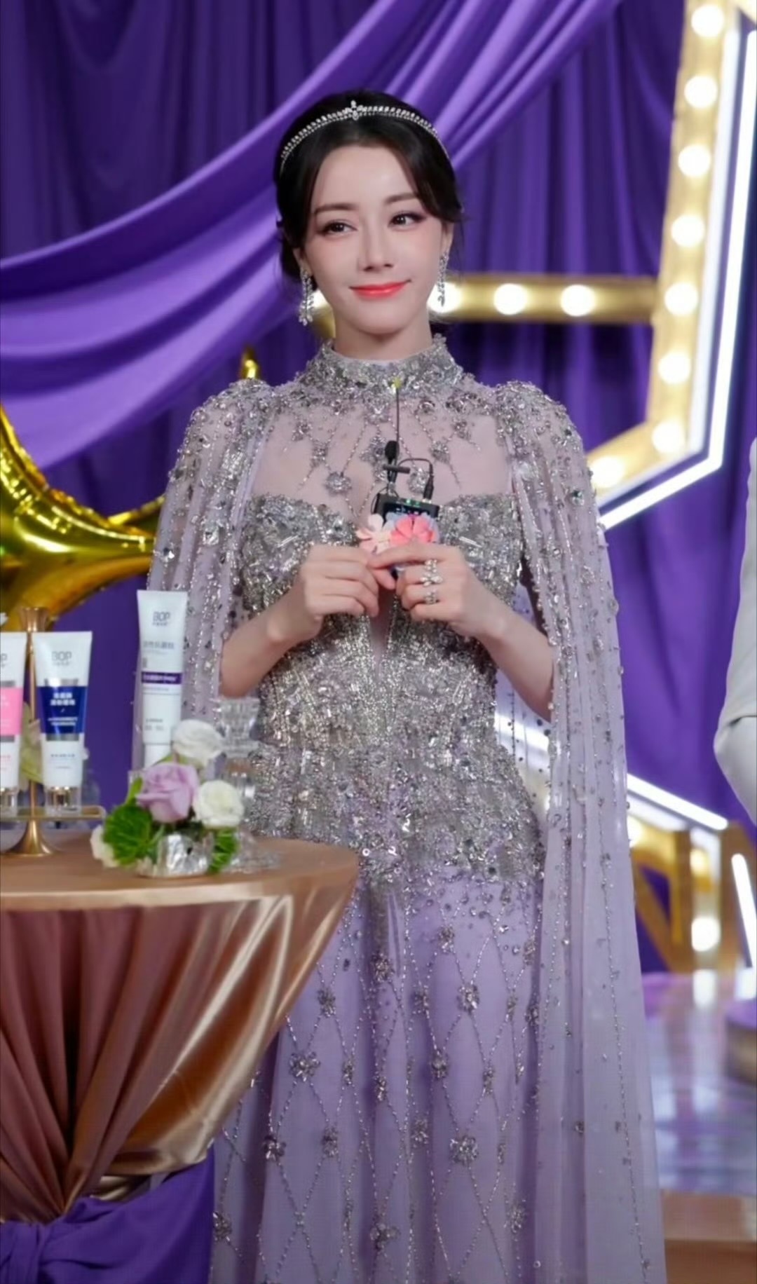 迪丽热巴迪丽热巴紫色亮片刺绣披纱裙迪丽热巴紫色披纱高定哇趣!迪丽热巴今天完全就是