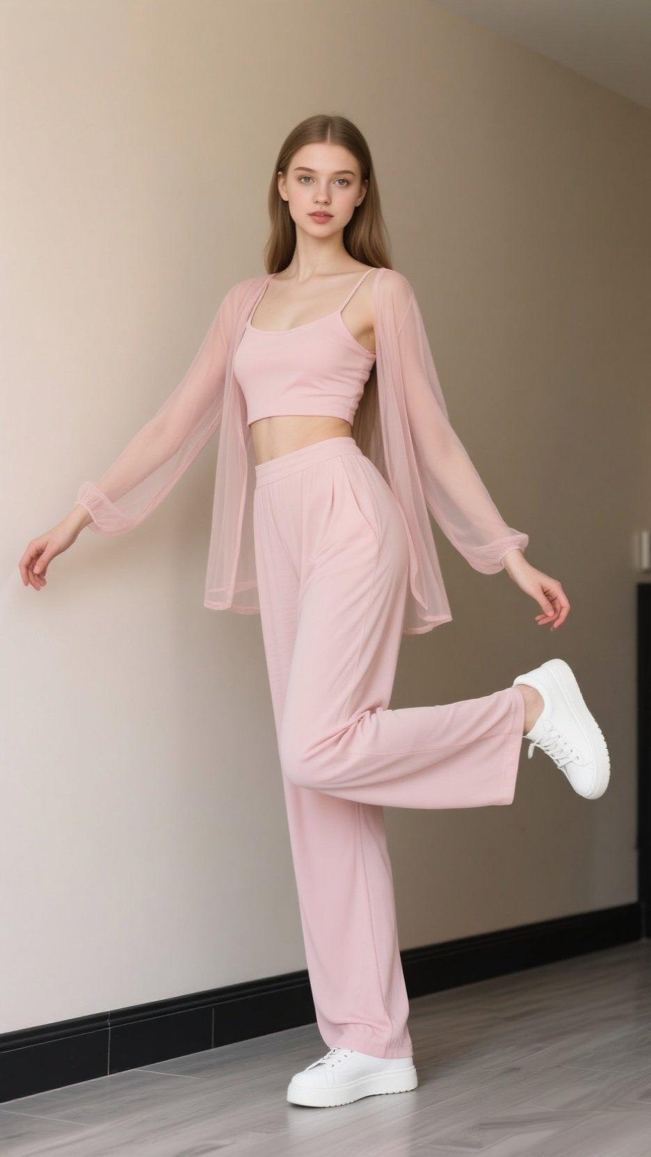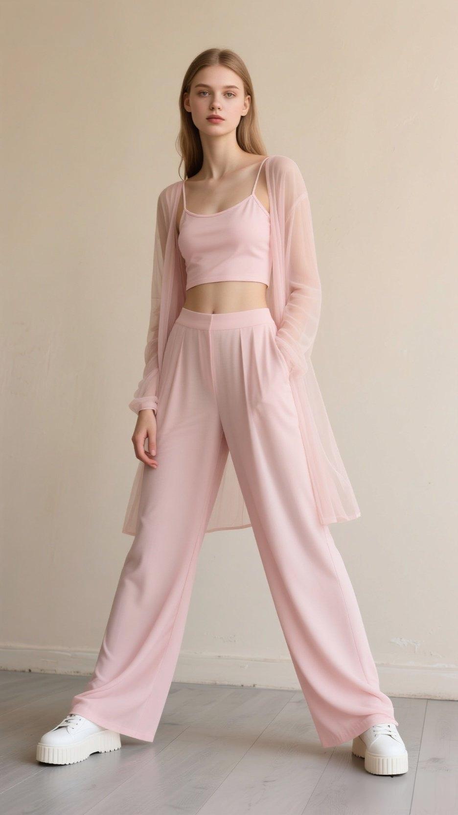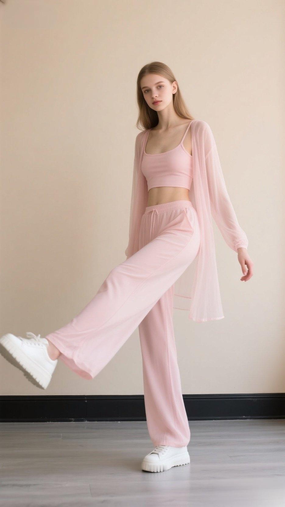 粉嫩穿搭指南💕温柔甜美的粉色套装,搭配白色运动鞋,轻松打造休闲时尚感!温柔懒人时尚穿搭 嫩粉色系穿搭